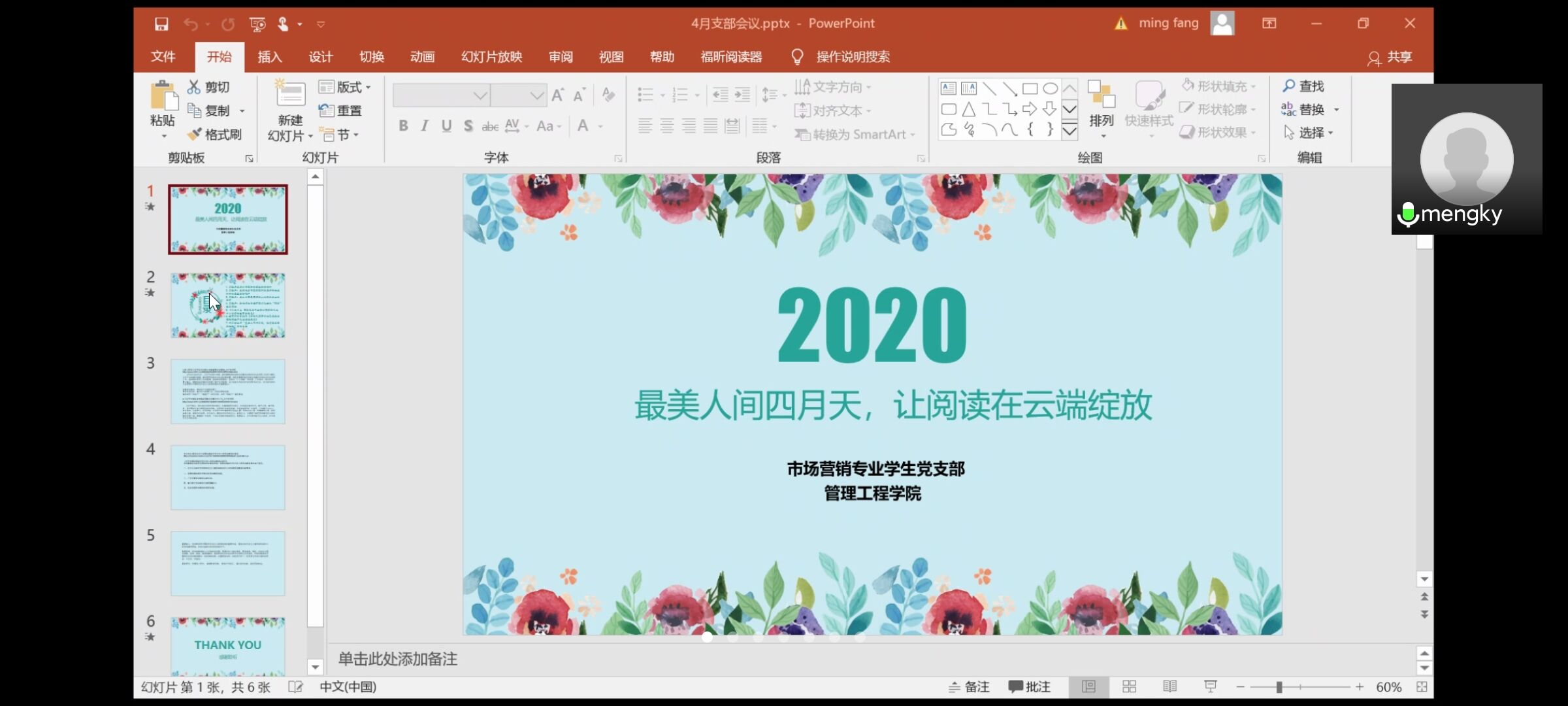 疫情改变了整个世界,迫使人们停下追逐外部世界的脚步,但阻挡不了我们渴望读书的步伐。近日,市场营销专业学生党支部积极开展线上阅读分享活动,用阅读的力量,静待花开。