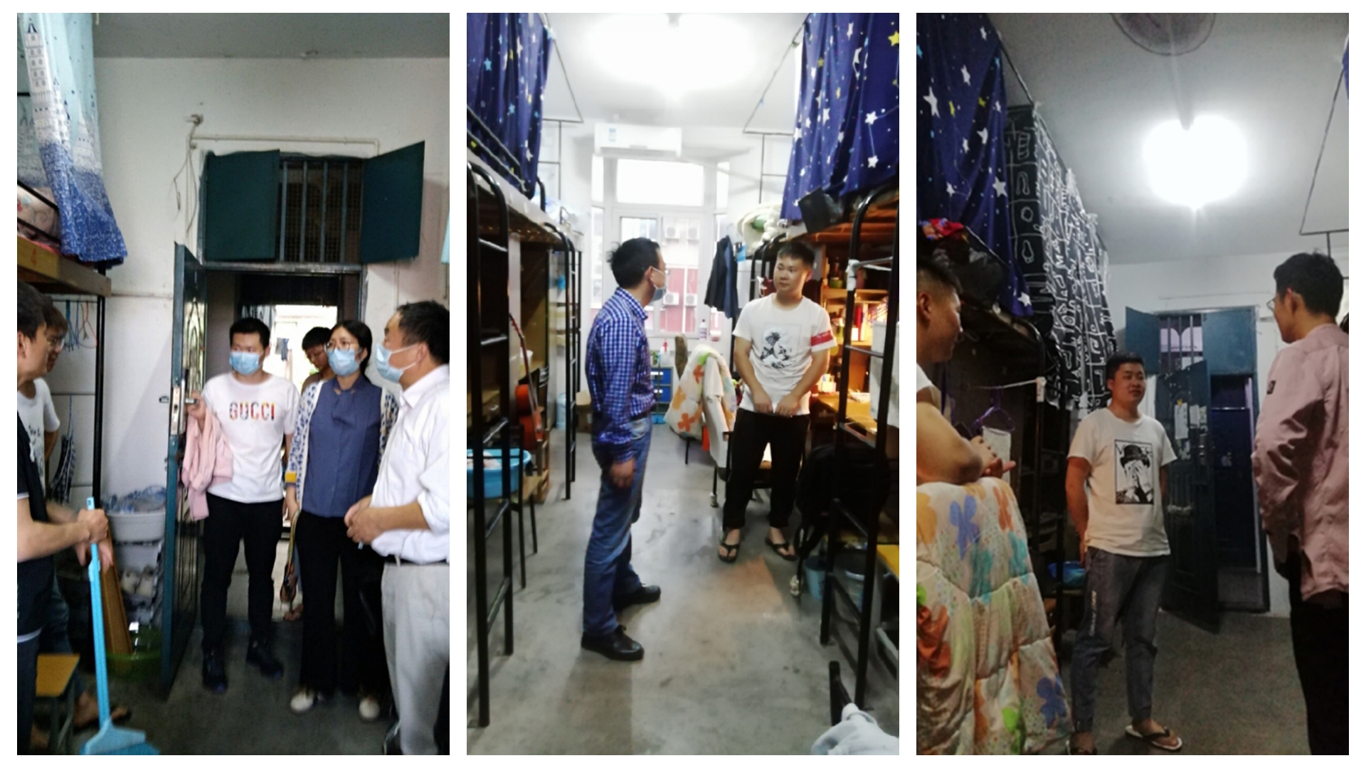 为切实做好校园疫情防控,了解第一批返校学生思想动态,落实宿舍管理相关工作要求,增强学生自我防范意识,确保大四毕业生与研究生返校后学习生活的正常有序进行,返校首日当晚,管理工程学院领导邬海量、龚本刚、程繁和相关班级辅导员走访了学生宿舍,检查宿舍卫生安全状况,关心同学们的健康和生活状况。
