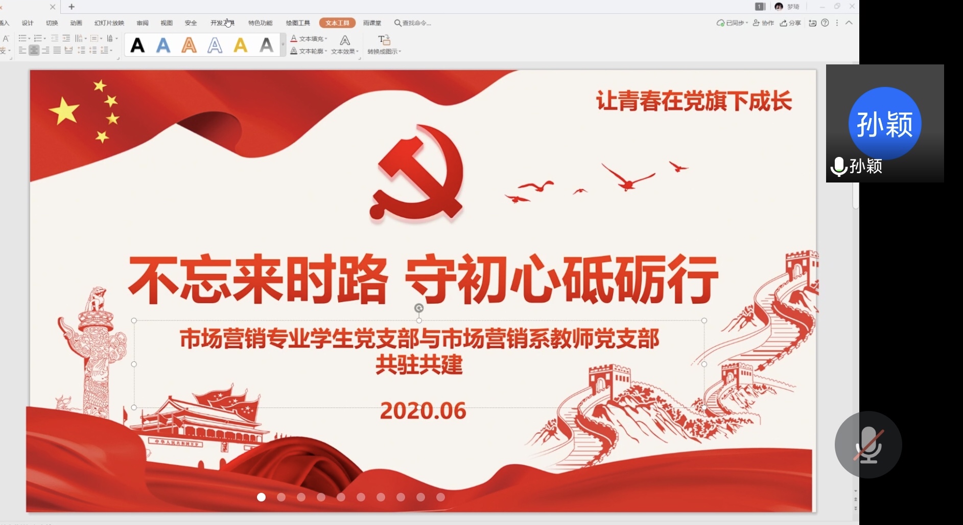 “党”不仅是一个字,更是一种信仰。又是一年毕业季,为了引导毕业生党员“站好最后一班岗”,提高学生党员的党性修养和社会责任意识,64日下午,管理工程学院市场营销专业学生党支部与市场营销系教师党支部共驻共建,开展以“不忘来时路,守初心砥砺行-让青春在党旗下成长”为主题的党日活动。本次活动采用线上方式,各位党员同志通过腾讯会议语音视频、共享屏幕的方式进行交流。