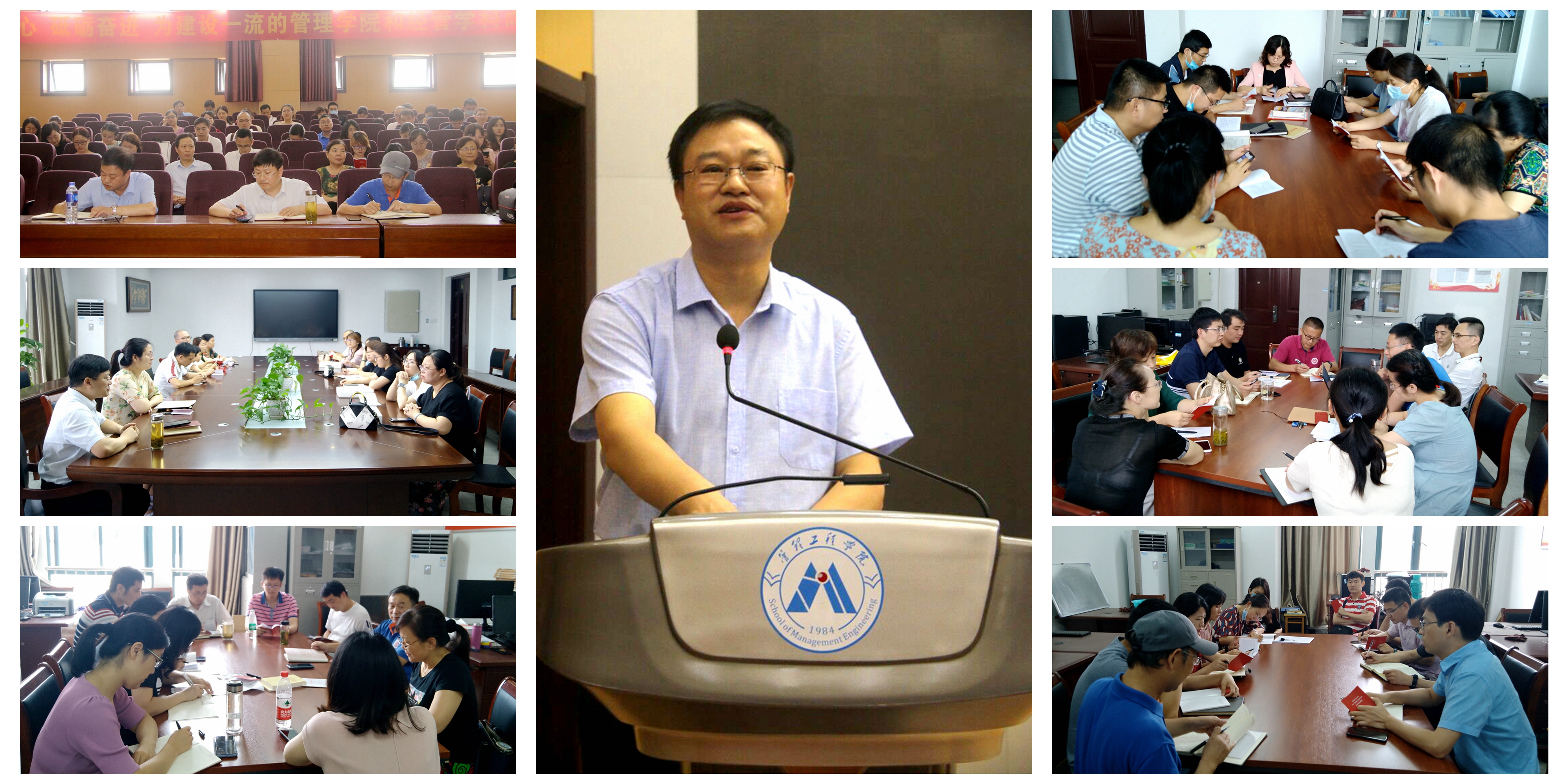 7月14日下午,在前期动员,各系、支部集中学习、中心组(扩大)学习和个人自学的基础上,管理工程学院召开“对标‘六要’标准,争做‘四有’好教师”专题学习研讨会,副校长叶常林到会指导。