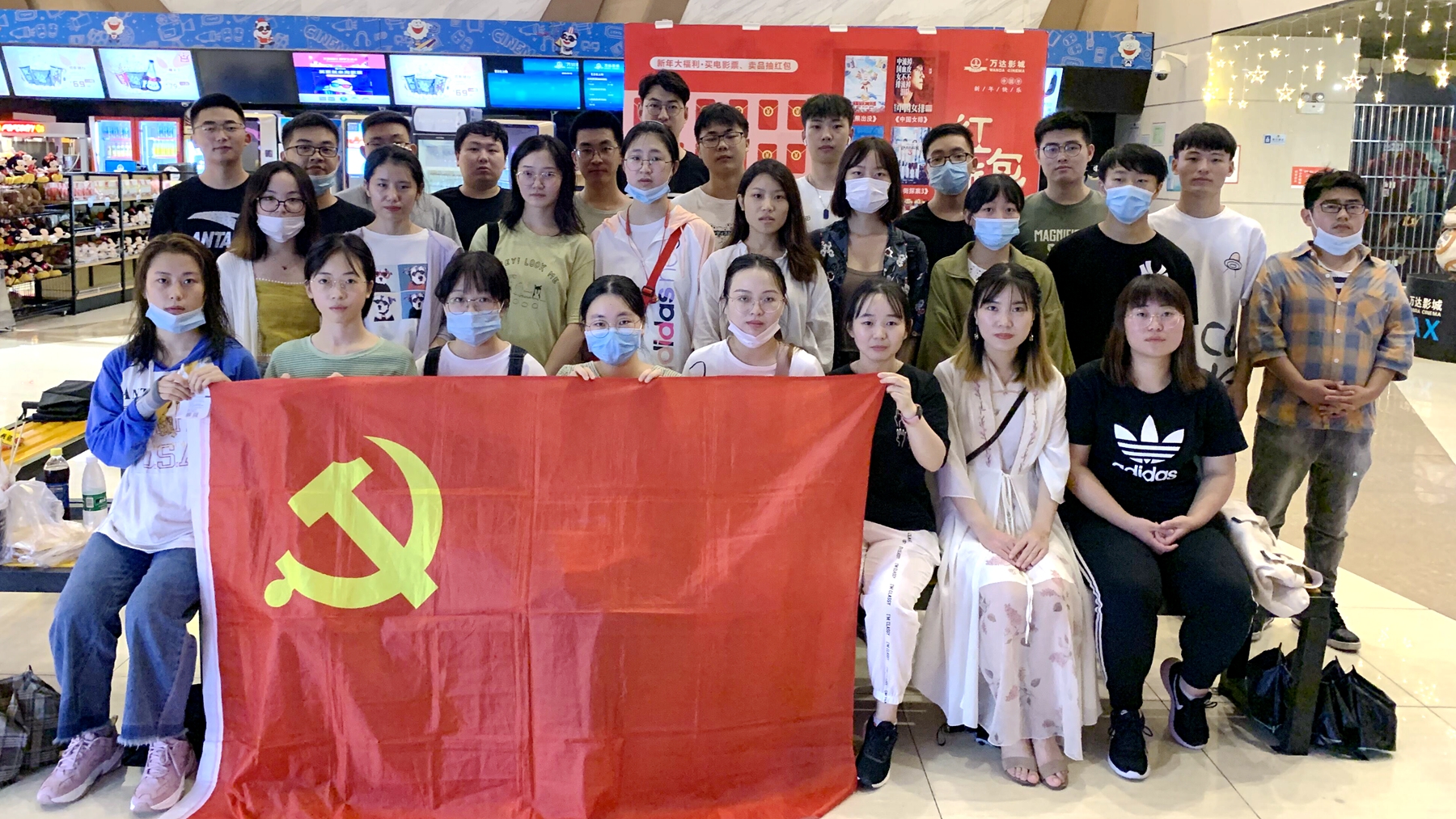 到达电影院后,同学们按照要求佩戴好口罩,接受体温检测,依次排队进入影厅。“国人皆如此,倭寇何敢”,这部影片讲述了爱国烈士以血肉之躯扛起救国救民大旗,驻守四行仓库、顽强抵抗四天四夜、死守上海最后防线的故事,让观众共同感悟影片中战火英雄们以血肉护山河的爱国情怀。