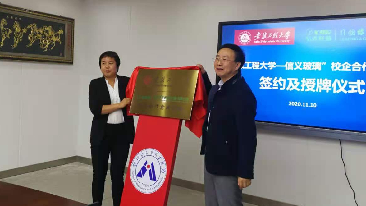 11月10日,经济与管理学院与信义节能玻璃(芜湖)有限公司在C818会议室举行了校企合作签约暨授牌仪式。仪式由经济管理学院副院长谢荣见主持,学院党政领导、各专业负责人、骨干教师参加了仪式。