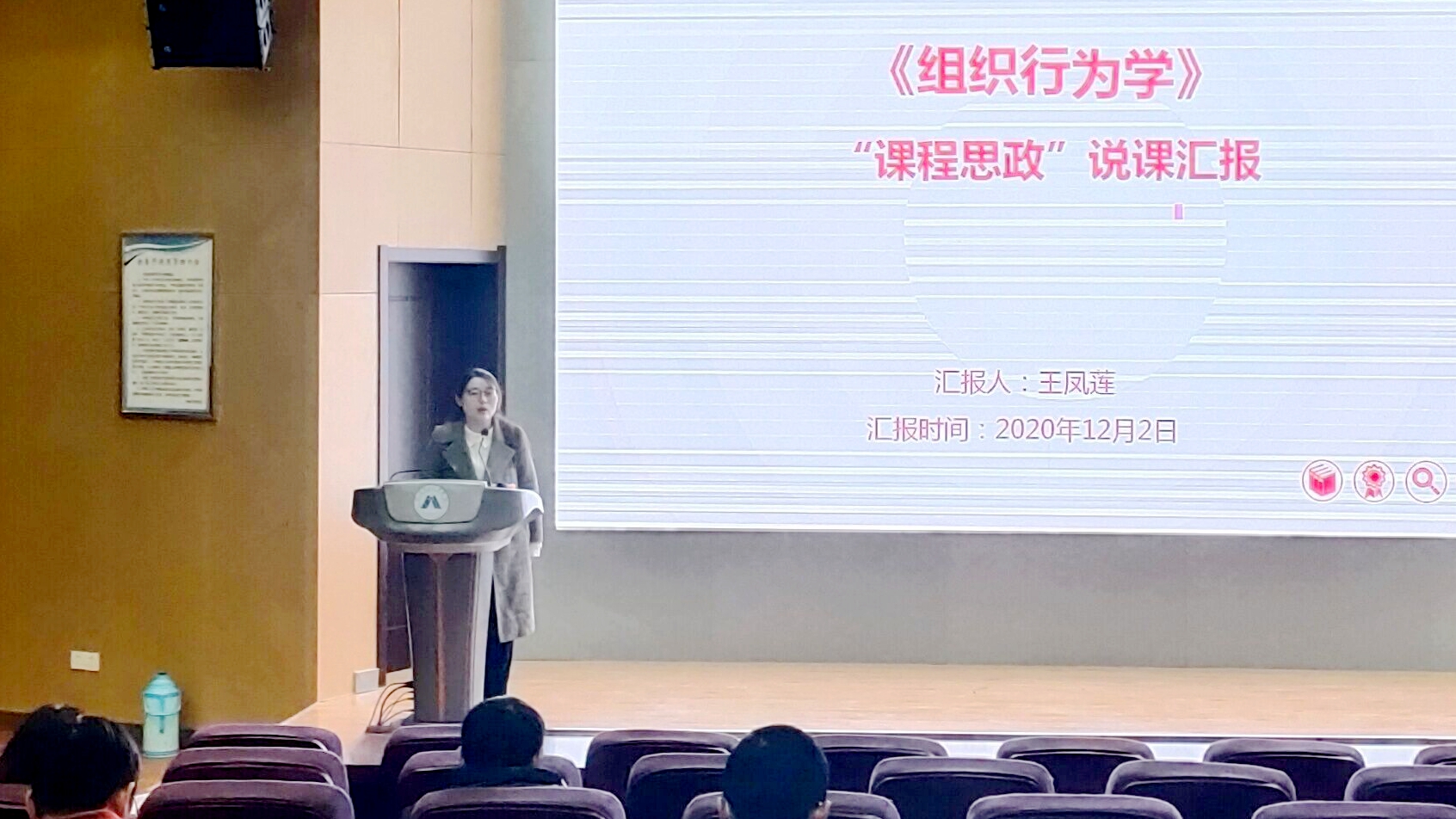 为深入贯彻习近平总书记关于教育的重要论述和全国教育大会精神,落实立德树人根本任务,推进学校“三全育人”综合改革,构建课程思政育人体系,提升教师开展课程思政建设的意识和能力,122日下午,经管学院在7楼报告厅组织课程思政学习交流会,邀请在学校第三届“课程思政”说课比赛中获得二等奖的王凤莲老师作交流报告。报告由学院党委书记邬海量主持。