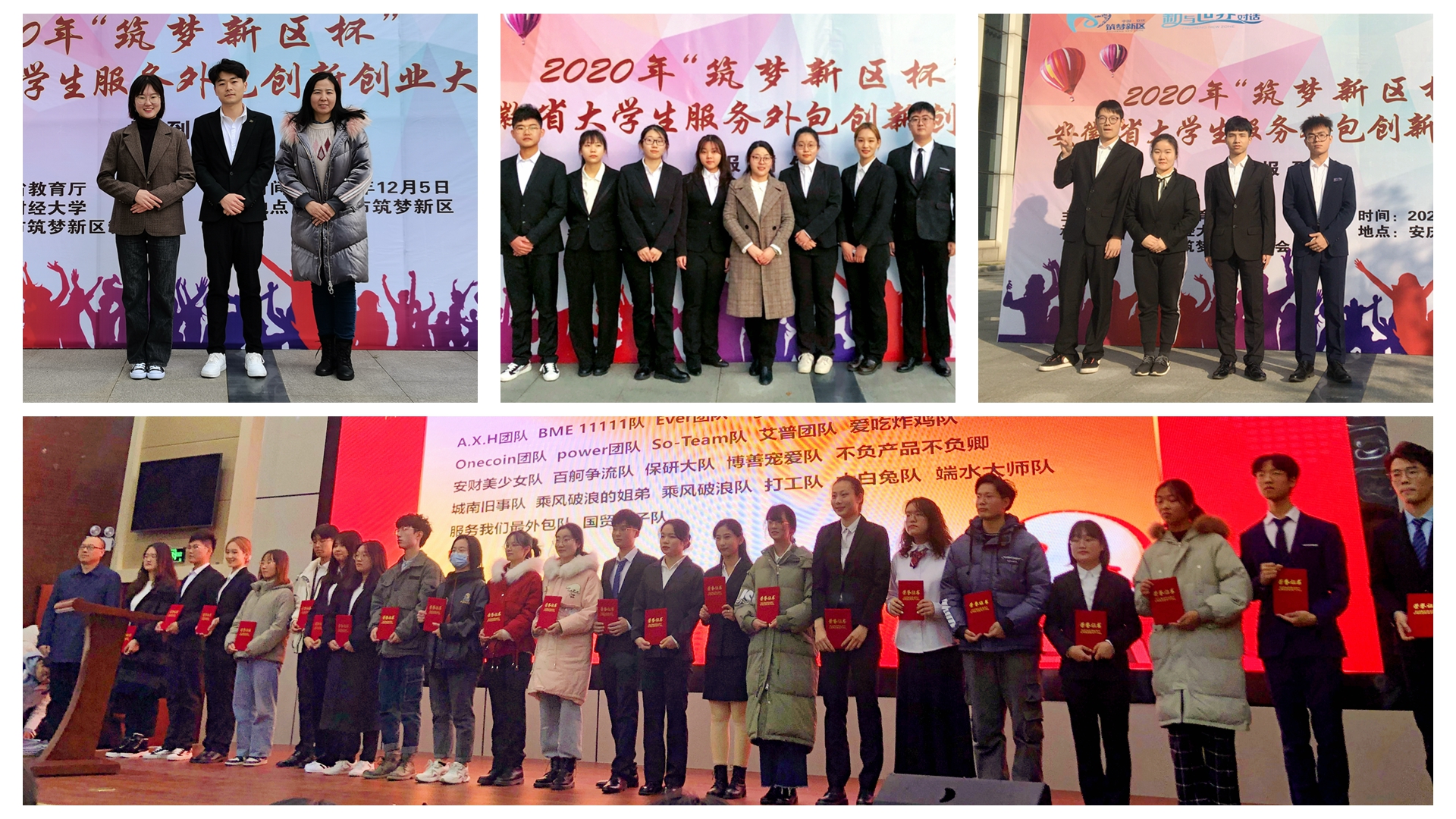 12月5日,由安徽省教育厅主办,安徽财经大学、安庆筑梦新区管委会承办的2020年“筑梦新区杯”安徽省大学生服务外包创新创业大赛决赛在安庆市筑梦新区成功举办。我校多支队伍成功晋级决赛,并斩获省一等奖1项、二等奖3项、三等奖多项。