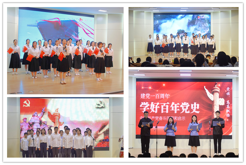 分党校各培训班以小组为单位组队参加了初赛,经过各培训班的选拔,14支队伍站到了决赛的舞台,他们用歌声、舞蹈、朗诵等各种形式讲述党的革命故事、奋斗故事、成长故事,向伟大的党献上诚挚的祝福。鲜红的党旗,经历了100年的洗礼,更加飒爽多娇,庄严的党徽经过100载的锤炼,更加坚如磐石,比赛以诗朗诵《党旗,高高飘扬》拉开序幕。话剧《我的1919》,再现了一百多年前“五四”运动的爱国浪潮;歌曲《我和我的祖国》、《百年红船》、《颂歌献给党》、《新时代》、《中国中国,鲜红的太阳永不落》、《强国一代有我在》,唱出了大学生对党和祖国的祝福,勾起观众们对中国革命峥嵘岁月的回忆;诗朗诵《青春中国》、《我亲爱的祖国》、《中国力量》、《不朽》、《百年红船》抒发了同学们把握青春,不忘初心紧跟时代的脚步,秉持强国一代的使命感和责任感。
