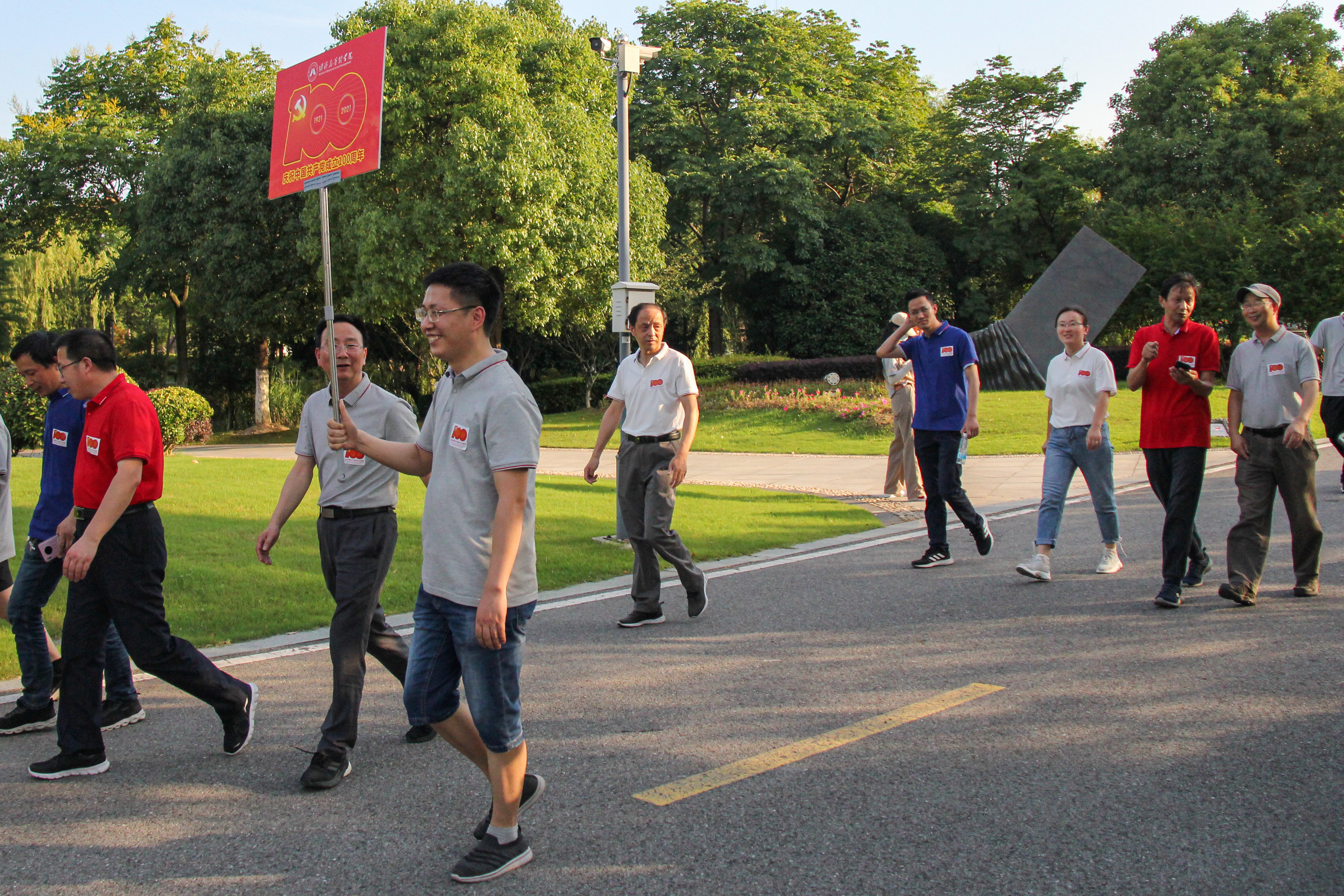 为向建党100周年献礼,按照学校工会部署,6月23日下午,经济与管理学院七十余名教师在芜湖市雕塑公园举行以“永远跟党走,阔步新时代”为主题的教职工健康徒步走活动。