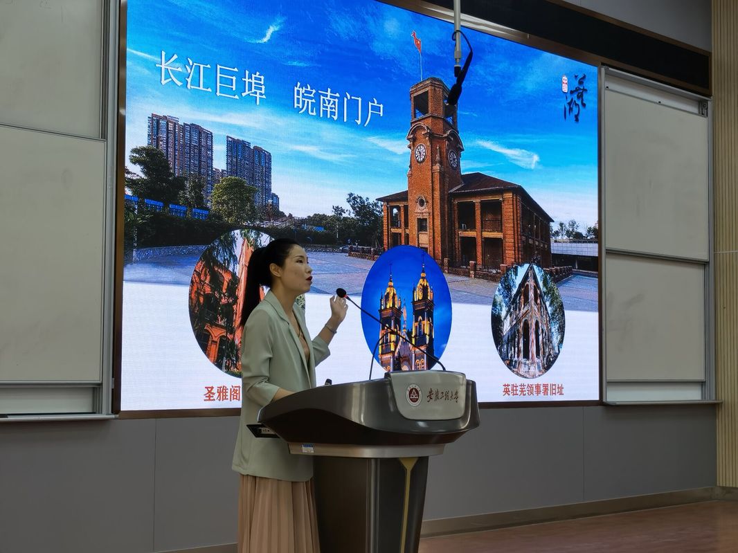 “人民城市,欢乐芜湖”,宣讲会上,两位导游用精美的图片、绚烂的视频从“美食美景、人文地理、风土人情、创新创造、经济发展”等方面娓娓道来,向新生同学们全面展现了芜湖丰富厚重的文化底蕴、奋发创新的城市特色、秀美宜居的城市环境、欢乐多姿的城市生活,精彩、新颖、别开生面,给新生同学们留下了深刻的印象,获得了同学们一致惊叹。
