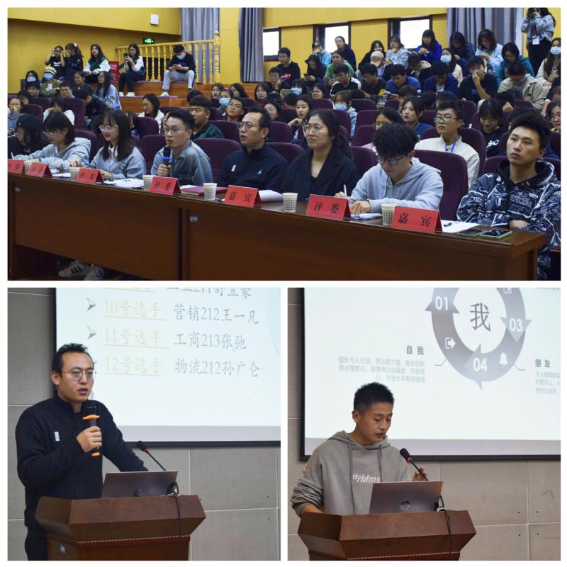 为了增强大学生的自我认知能力,提高学习效率,经济与管理学院于11月3日下午在C座3楼报告厅举办了“我的大学生涯设计”大赛决赛。出席本次活动的嘉宾有院团委书记赵恒梅老师、材料学院团委书记陶冶老师、建工学院苏伟刚老师和辅导员高天宇老师。经管学院团委新媒体主任王然、院团委副书记朱慧婷、新生导员代表丁金璐和优秀学生代表宛雨洁担任评委。
