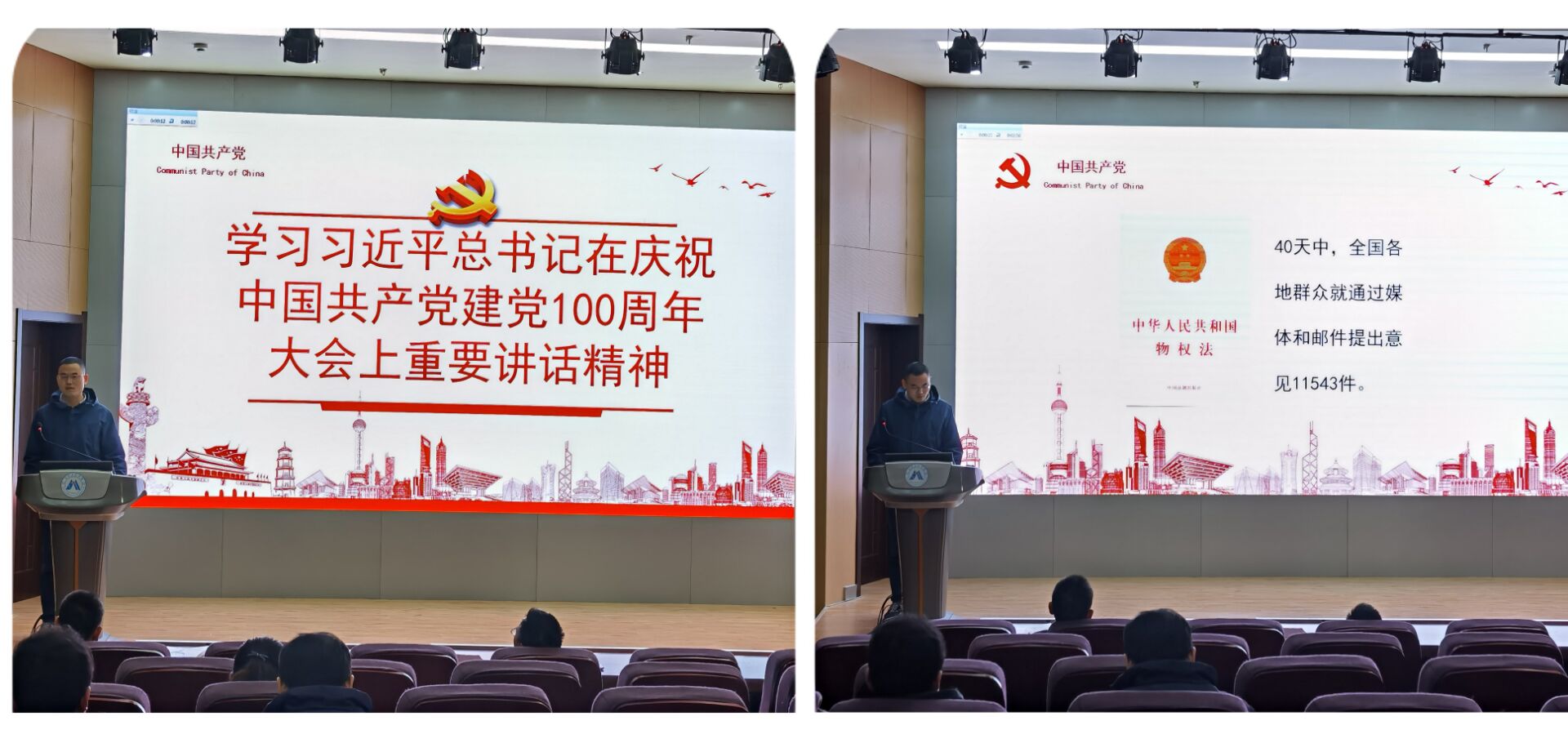 学院党委副书记章兵在总结中表示,广大教职工要持续深入学习习近平总书记“七一”重要讲话精神,并与当前的十九届六中全会精神学习、宣传一体推进、贯彻落实,切实用行动践行自身的初心使命,为学校和学院的建设添砖加瓦。