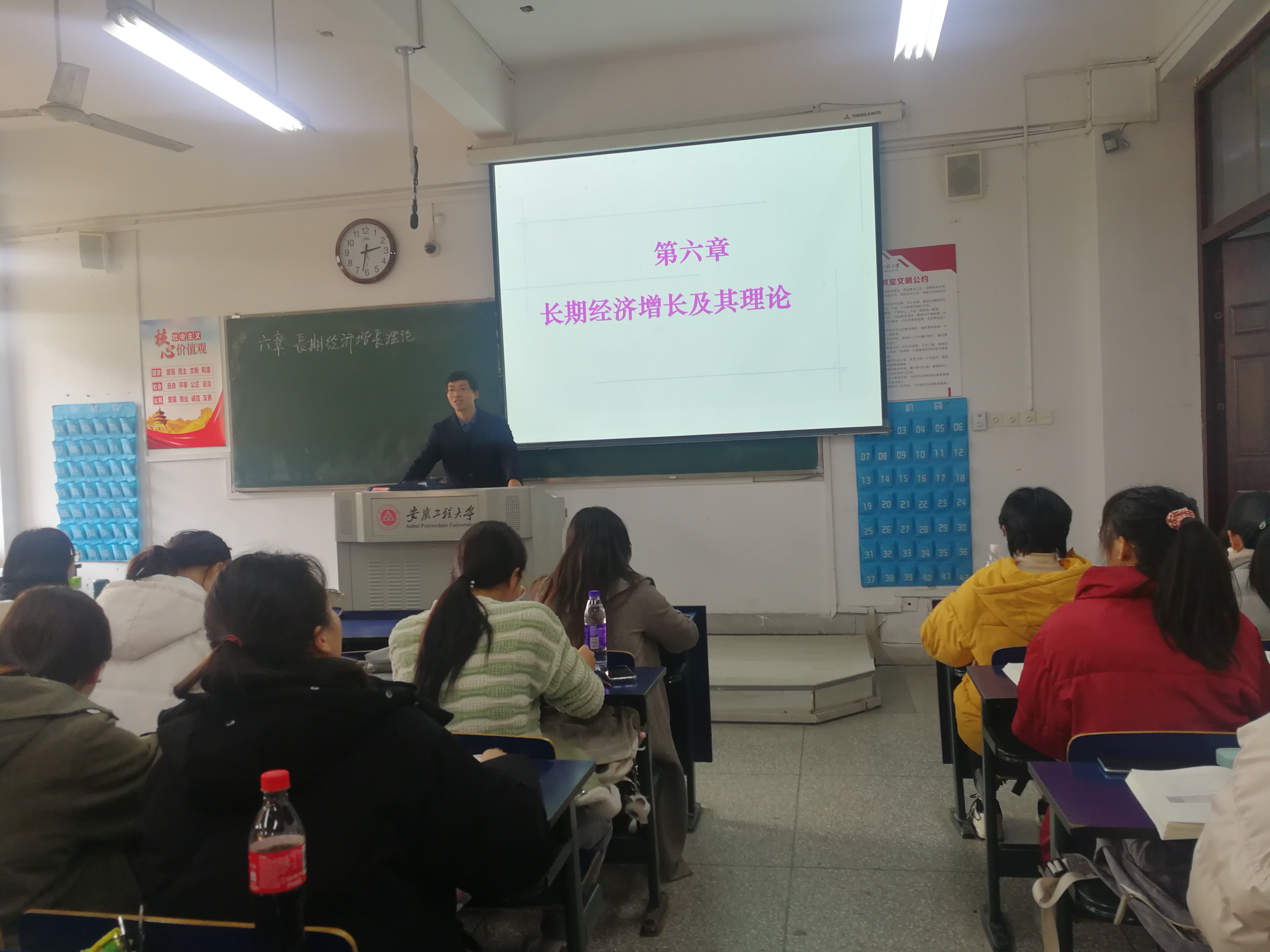 为充分发挥优秀教师在青年教师培养过程中的辐射和示范作用,促进教师教学方法的相互交流学习,不断提高教师队伍整体素质和水平,提升教学质量,在教务处(教师能力发展中心)的指导下,经济与管理学院组织青年教师和新进教师参加“金”彩一课教学观摩。本次观摩内容是《宏观经济学》,由张晓东老师主讲。