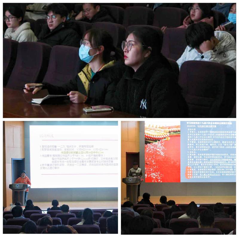组织部负责人详细介绍了支部定级工作,强调智慧团建录入和校团委工作手册抽查工作等相关事宜要严格按照规定执行。组织部志愿者着重介绍了学习党的十九届六中全会精神主题团日活动的相关事宜,并对严格遵循具体要求递交团日活动材料作了说明,青年发展部负责人对各团支部在最近的工作中要深入开展“一二·九”运动86周年主题教育系列活动进行了布置。