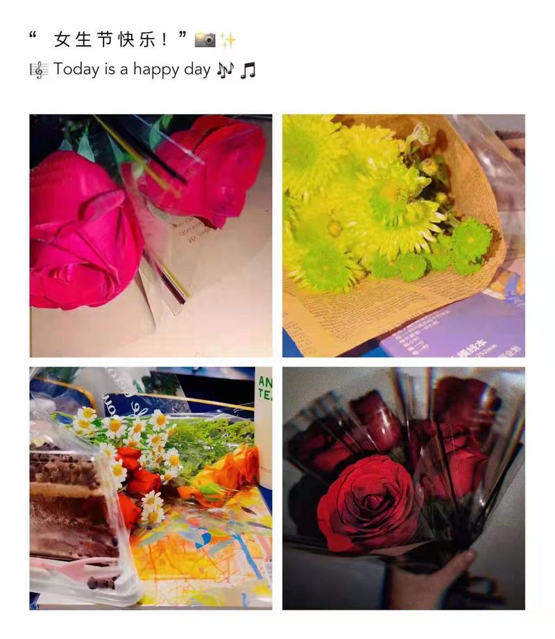 人力资源管理专业举办了“青春美丽、容颜不老”主题活动,为女生拉横幅、送贺卡、切蛋糕,并精心准备了祝福视频;物流管理专业本着“欢乐、简朴、创新”的主旨,为所有女生都送上了鲜花与奶茶;市场营销专业提前准备好了惊喜花絮,并在晚自习开始后简单介绍了节日背景和惊喜背后男生们的准备过程,推动了班级气氛;工商管理专业三个班长和部分同学提前去班级布置和包装礼盒,为班级女生们送上了“盲盒”惊喜;工业工程专业男生们为每位女生都送了贺卡与祝福语;国际贸易专业每个女生都收到了一份小礼物,男生们用鲜花与巧克力,为这个节日带来了香甜的气息。