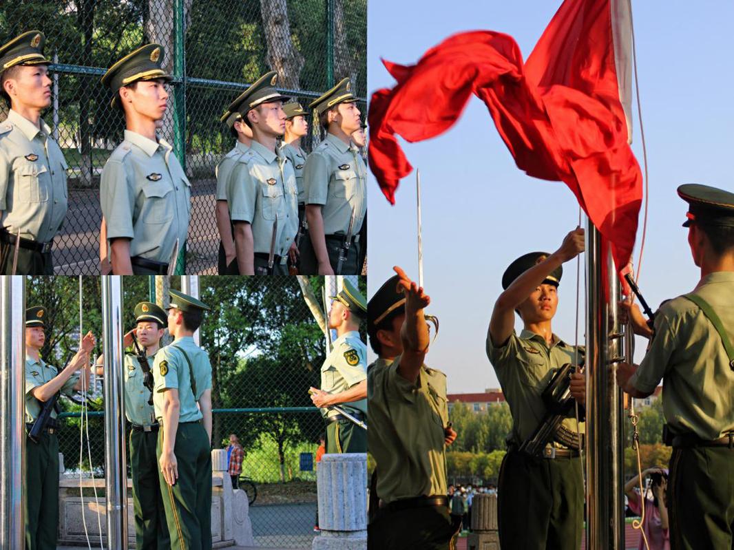 学院严格遵守疫情防控要求,在升旗仪式开始之前,有序指导全体学生在规定时间和地点完成列队等候。在全体师生的注视下,英姿煞爽的国旗护卫队出旗,现场奏响起义勇军进行曲》,五星红旗高高升起。全体成员行注目礼并唱国歌,此刻望着冉冉上升的国旗,内心充满着激动与震撼。从列队到升国旗的全过程,在场师生时刻保持着严肃庄严。