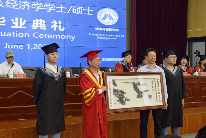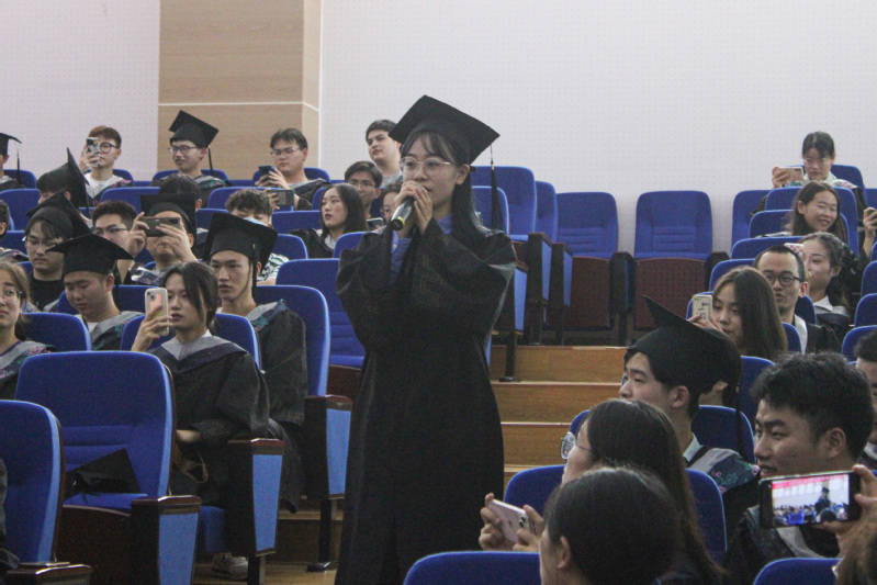 本科毕业生代表章开杨发言:“今后不论奔赴哪里,作为经管人的我们,心中充满着对经管院栽培的感恩。虽然前方的路不再有经管院相作陪伴,但回首来时路,经管院永远在这个路口向我们招手,我们也终将会交出我们的答卷。请母校放心,请学院放心,请老师放心,我们定会不忘初心,牢记使命,砥砺前行,在各自的领域勇攀高峰,努力为安工程代言。”硕士毕业生代表钱甫成表示:“我们将永远记住,我们的事业从这里开始,我们的未来从这里起步,谢谢我最可爱的母校。在未来的日子里,“国家大事,千万尽力”,不论我们身在何处都会怀揣着一份对生活的热爱,牢记青年一代有理想,有本领,有担当,国家有前途,民族就有希望的叮咛和期望,在各自的领域发光发热。”