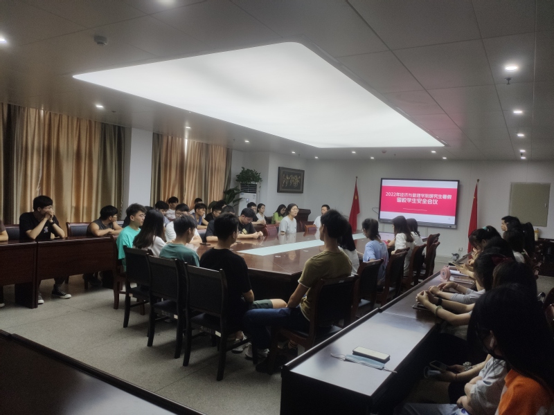 2022624日上午,经济与管理学院党委书记章兵、研究生辅导员赵恒梅在C818召开2022年经济与管理学院研究生暑假留校学生安全会议。