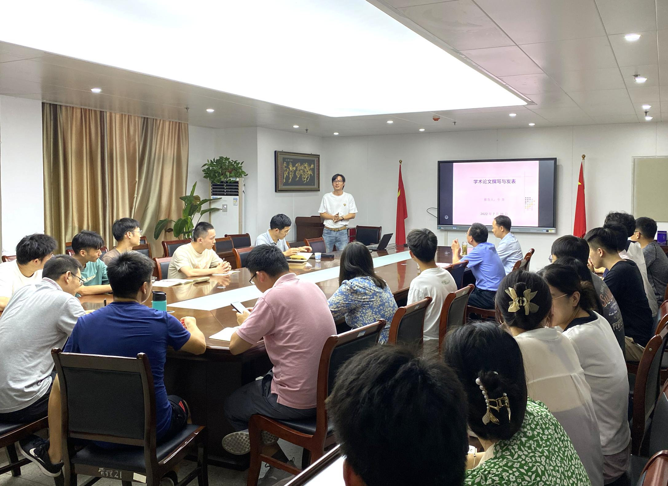 报告会上,牛奔教授作了题为《学术论文撰写与发表》的学术报告。牛奔教授首先从科技论文的特点出发,介绍了撰写论文之前查找资料的重要性以及文献信息检索的方法和技巧。其次,他从论文如何选题、英文标题凝练、英文摘要句法、引言常用语句、正文整体结构等方面详细剖析了高水平论文撰写的技巧和注意事项。最后,牛奔教授向与会师生介绍了论文投稿、反复修改、发表等方面的注意事项。
