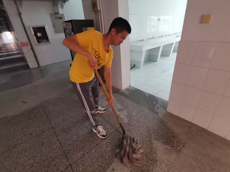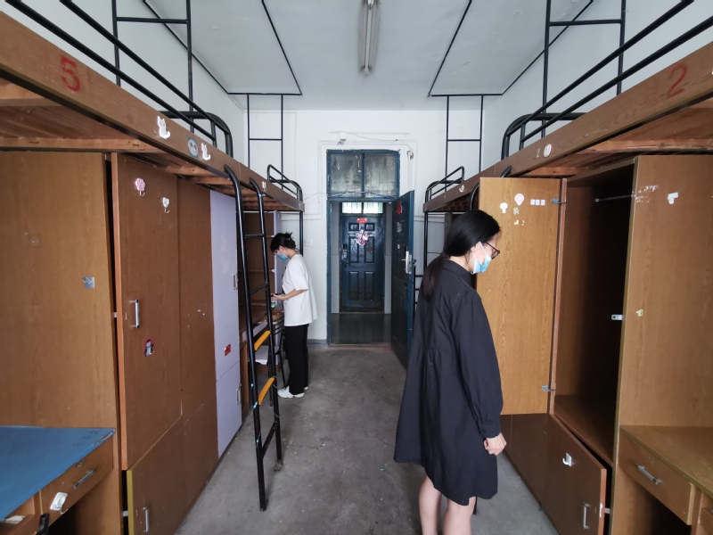 在检查过程中,全体党员在支部书记的带领下,根据新生宿舍编排,前往男生宿舍15栋、女生宿舍12栋与5栋,逐一检查宿舍的采光环境、通风条件与硬件措施,并自备清洁工具,针对卫生条件较差的宿舍有序开展打扫活动,擦拭桌椅、清扫灰尘,充分展现出学生党员、学生干部的服务意识,让新生宿舍焕然一新。