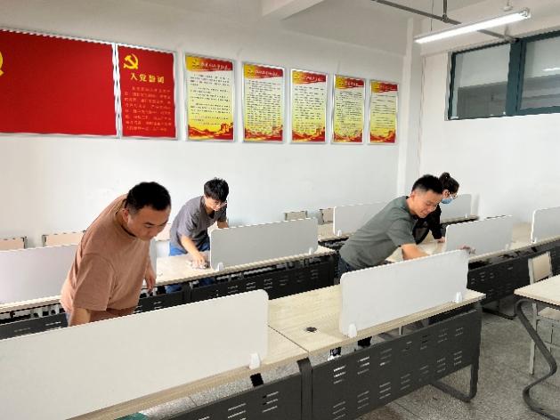 研究生党员们自备清洁工具,在2022级新生上课的教室有序开展打扫活动,擦拭桌椅、清扫灰尘、调试设备,充分展现出学生党员的服务意识,同时保持寝教室内外通风,确保教室消毒完毕,在疫情影响下尽最大努力,使新生到校后能够享受安全、舒适、温馨的学习环境。
