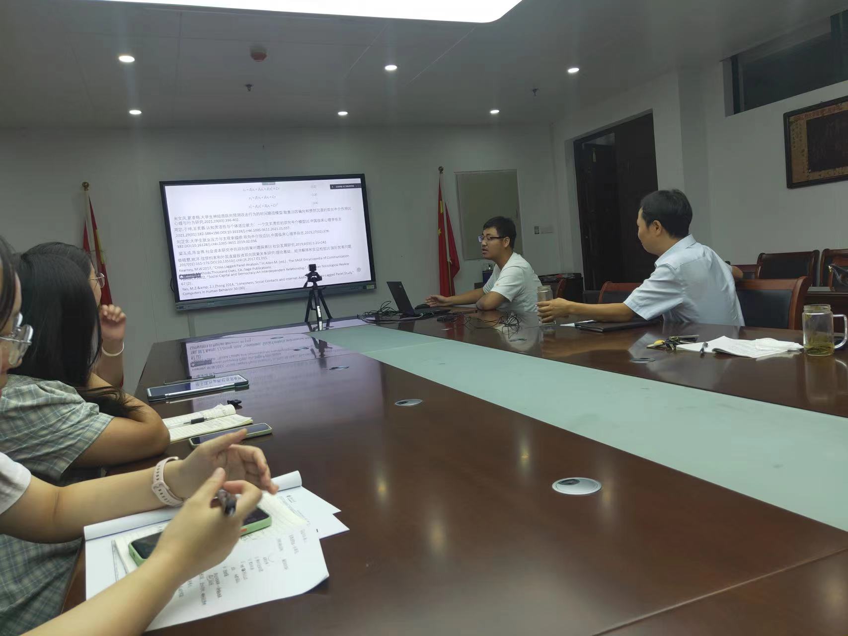 报告会下半场是论文分享与指导环节,丁如曦为经济与管理学院的研究生进行论文指导。郭孟、张杰、施旭东三位研究生分别汇报了自己的研究成果。丁如曦首先肯定了我院研究生培养质量,称赞同学们的论文话题新颖,并就同学们分享论文的内容给出具体修改建议。指导过程中,丁如曦还围绕学术论文的影响力、质量要求,具体撰写方法以及投稿的注意事项等方面进行内容分享。