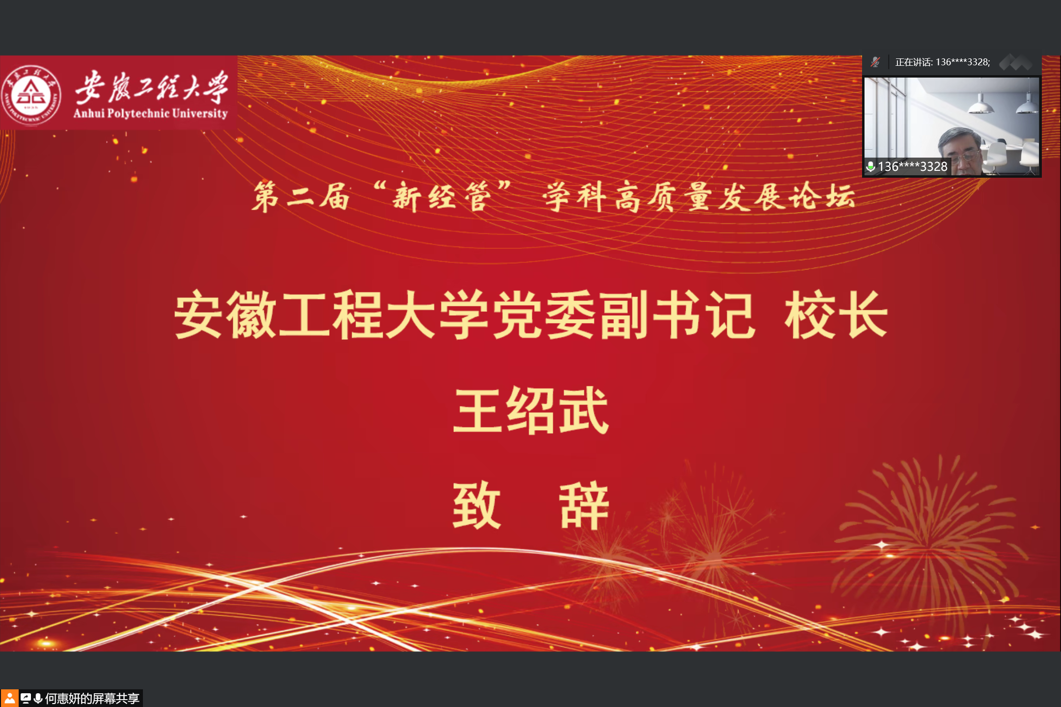 王绍武代表学校致欢迎辞。他向参加本次论坛的各位专家表示诚挚的问候和衷心的感谢,并简要介绍了学校的办学历史和发展历程。他指出,学校历来高度重视经管学科建设和人才培养,加强顶层设计,注重协同升级,促进育人创新,深化课程改革,努力探索行之有效的、符合我校实际的新经管学科建设路径,衷心期盼各位专家、各位嘉宾畅所欲言,进行思想交锋与智慧碰撞,为我校“新经管”建设建言献策。