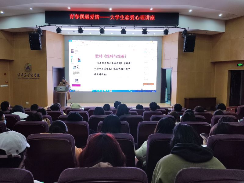 为贯彻落实校党委“三全六专”工作要求,丰富同学们的校园生活,感受青春的活力,调节不良心理情绪,享受冬日温暖,实现让学生“正”起来、“乐”起来。12月2日下午,经济与管理学院邀请学校心理健康教育中心副主任金艾裙教授,在C座七楼报告厅开展了以“青春偶遇爱情”为主题的大学生恋爱专题讲座。