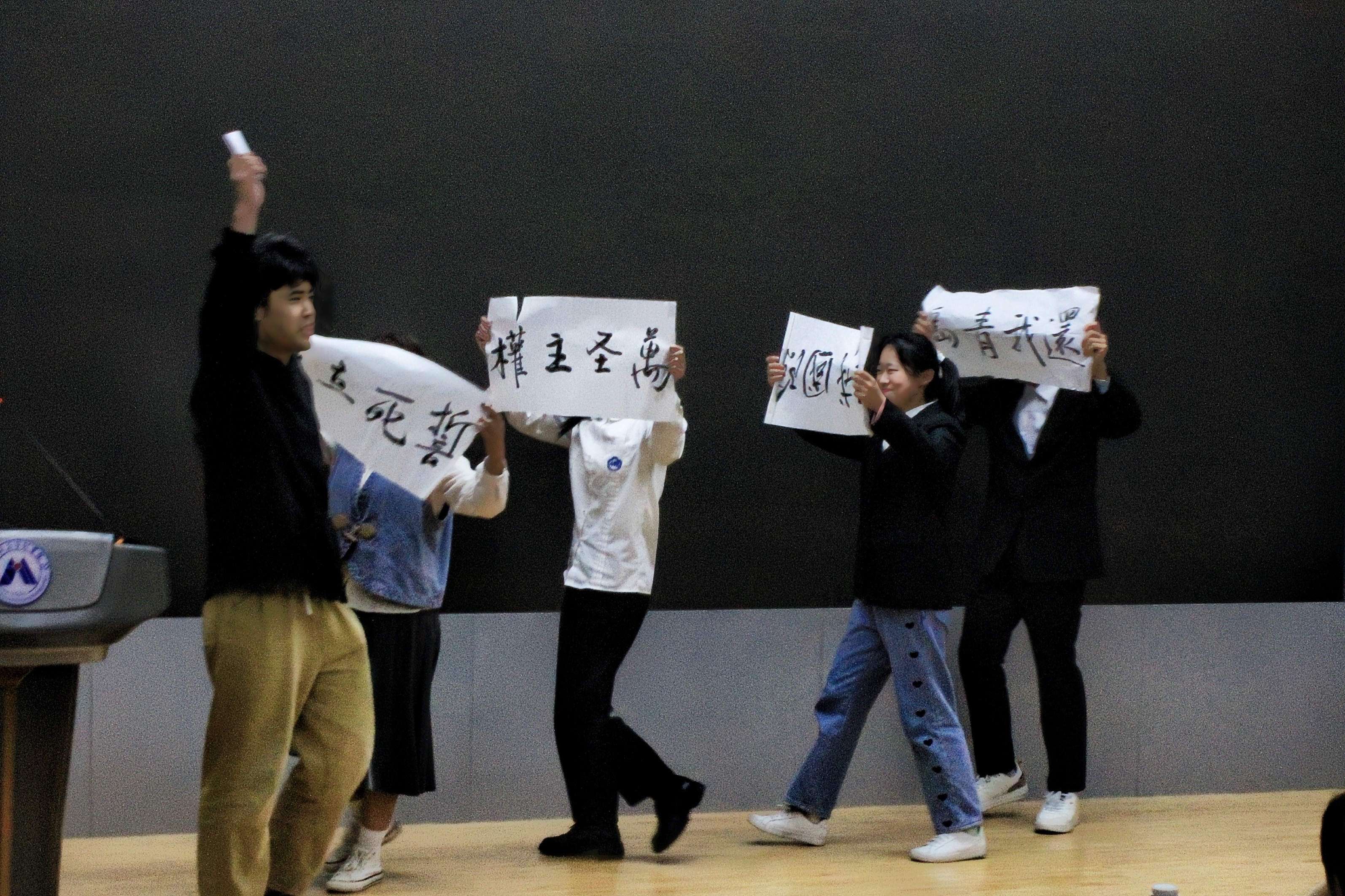 话剧《破晓》为在场的同学带来了一场热血的表演,在山河无恙时,所有的学生都受着保护,无忧无虑地徜徉在知识的海洋里;当家国有难,学生亦挺身而出,用青春去撑起国家的脊梁。坚定信仰,爱国爱民,正是读书人当有的情怀。青年学生是国家的朝阳,破晓之时,必将冲散浓雾,向大地洒下自己的光。当话剧《刘胡兰》内容的关键词“生的伟大,死的光荣”出现的时候,这八个大字早已镌刻在了同学们的心中,而“山西文水县云周西村”的那座雕像丰碑也深深地印到了同学们的脑海。通过观看这幕话剧,青年学生们感受了英雄的豪迈,感受了刘胡兰自我抉择时的勇敢和崇高。话剧《觉醒》以“辛亥革命”为背景,以爱国为主题,回望“南陈北李”建党的历史故事,为同学们呈现出一段不一样的革命历史。《遵义会议》、《战火中的大学生》等话剧中同学们的表演流畅熟练、激情澎湃、可圈可点,赢得了在场同学们一次又一次掌声。