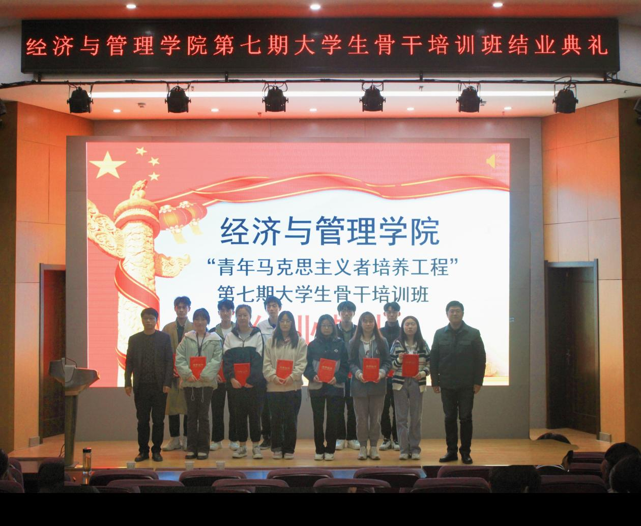 为深入学习党的二十大精神,贯彻习近平总书记关于青年工作的重要思想,落实学校“三全六专”工作要求,为党培养和输送坚定的青年政治骨干。3月30日,经济与管理学院第七期“青年马克思主义者培养工程”大学生骨干培训班结业典礼在C座7楼报告厅隆重举行,学院党委书记水心宝、党委副书记刘海涛、团委书记赵恒梅、青马班班主任吴兆克及全体青马班学员参加典礼。