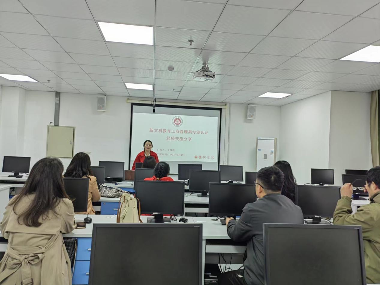 王凤莲围绕工商管理专业“新文科教育专业认证”认证自评建设、认证预检查、认证现场考查、专家进校的相关要求与流程等,进行了经验交流与说明。交流会上,教师们畅所欲言,气氛活跃,并就关心的一些问题做了深入探讨与交流。