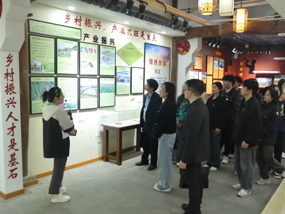 在何湾镇龙山书院党建文化展示馆,讲解员为师生详细介绍了李家发英雄故里、乡村振兴、电商平台、非遗项目、中国好人榜、生态建设、文化振兴等内容。期间,全体党员拜访了龙山村支部书记、中国好人胡太平。胡太平向大家分享了何湾镇龙山村经济发展的过去、现在和未来。水心宝对胡太平始终做到在平凡的岗位上践行党的初心使命,把为中国人民谋幸福,为中华民族谋复兴作为一名老共产党人的执着追求,几十年如一日带领龙山村民在实现乡村振兴、践行农业强国实践中的具体行为深表敬佩。双方均表达了建立持续有效合作意向,并就搭建“乡村-高校”合作平台、龙山品牌文化推广、民宿建设、文化内涵挖掘及地理标志产品、文创产品推广等问题展开了深入交流。在何湾镇龙山村“凤丹花”采摘基地,大家学习了凤丹花采摘要领,同学们在专业人员指导下将一片片花瓣采摘下来,一路呵护运送到烘干处。