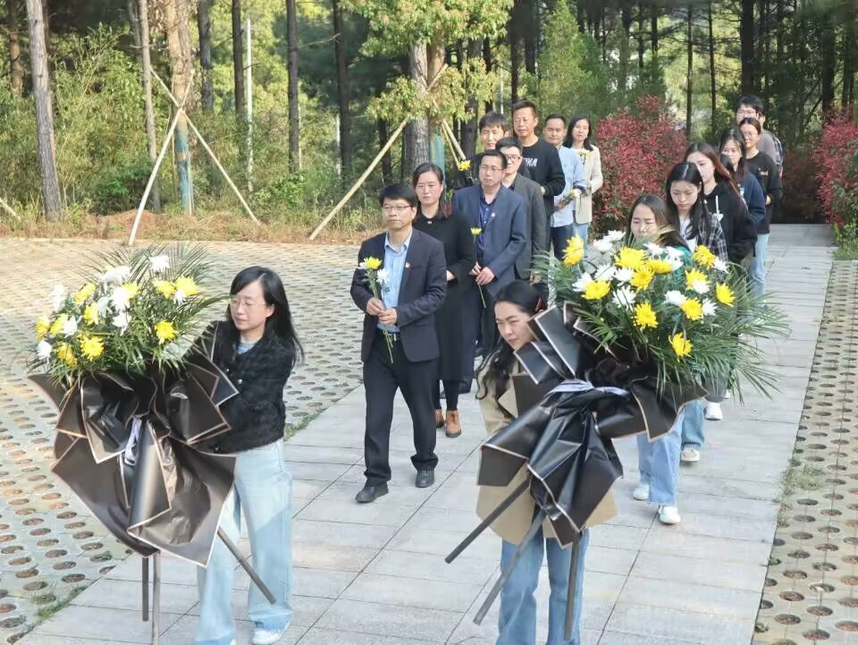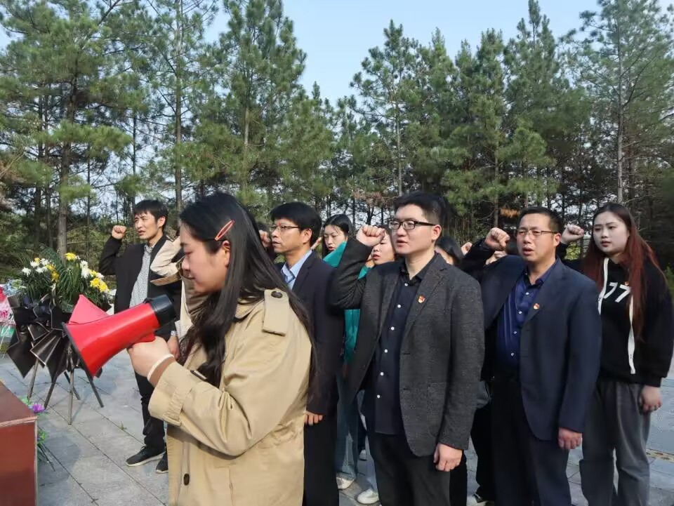 在何家湾战斗纪念处的革命烈士纪念碑前,全体党员敬献花篮、鲜花,寄托哀思。怀着虔诚敬慕的心情走上烈士陵园献花台阶前,大家鞠躬献花,一朵朵花整齐有序地摆放着,诉说着青山处处埋忠骨的壮烈。大家纷纷缅怀前辈们带着深深的家国情怀,怀着坚定的理想信念,在国家危难、民族危亡的时刻挺身而出,用生命、用最炽热纯净的初心,为身后的亿万“亲人”逆向而行,挺立成“中国好人”的模样。随后,在市场营销专业学生党支部书记徐博的带领下,全体党员重温入党誓词,庄严宣誓并肃立默哀,表达永远跟党走的决心以及对先烈们的无限哀思和敬意。