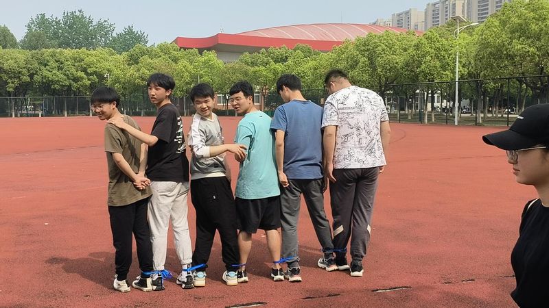 本环节共有两个游戏项目:第一个项目是“反着干”肢体协调游戏,该项目立足人的逻辑思维发展趋势,从具体形象思维到抽象思维,由动作思维发展到形象思维,再依次发展到抽象逻辑思维,该项目充分训练了同学们的逆向性思维和敏捷性思维,在此过程中同学们也收获了欢笑,释放了压力。第二个项目是“绑腿跑”六人七足运动项目,本项游戏旨在促进团队成员的感情和默契,提高同学们的沟通能力和思维能力,同时也培养青年大学生坚强勇敢、不怕困难的优良品质和主动乐观、积极合作的人生态度。