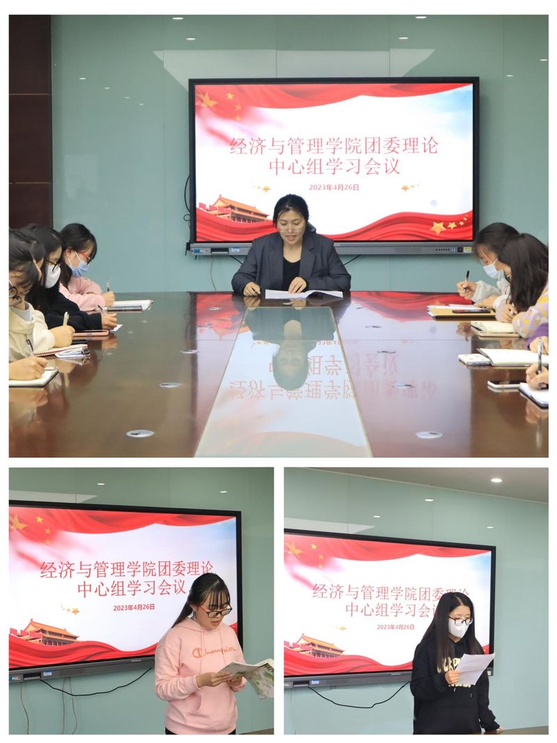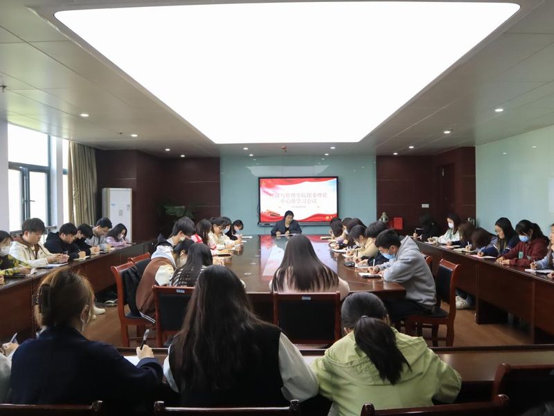 为深入学习贯彻党的二十大精神,在全面学习、全面把握、全面落实上下功夫,经济与管理学院于2023年4月26日下午在C座818召开第二次团委理论学习中心组学习(扩大)会议。学院团委书记赵恒梅主持学习并讲话。