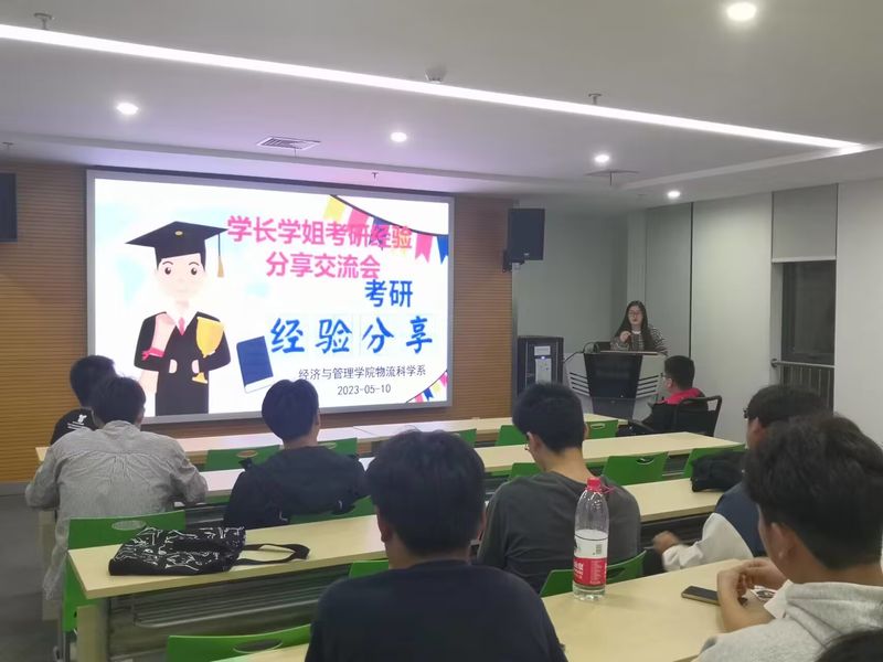 为深入贯彻学校“三抓”工作理念,落实学校“三全六专”育人工作要求,进一步加强学生对考研的认识和准备,解答备考学生的疑问。5月10日晚,经济与管理学院物流科学系邀请2023届成功上岸的王凡、张伟、郜晨星三位学长学姐在图书馆722分享了他们的考研经历和目标学校选择以及达线后的复试经验。本次活动由物流科学系主任程永宏主持,物流管理专业2020级正在复习考研的同学和2021级计划考研的同学,近50多人参加了分享会。