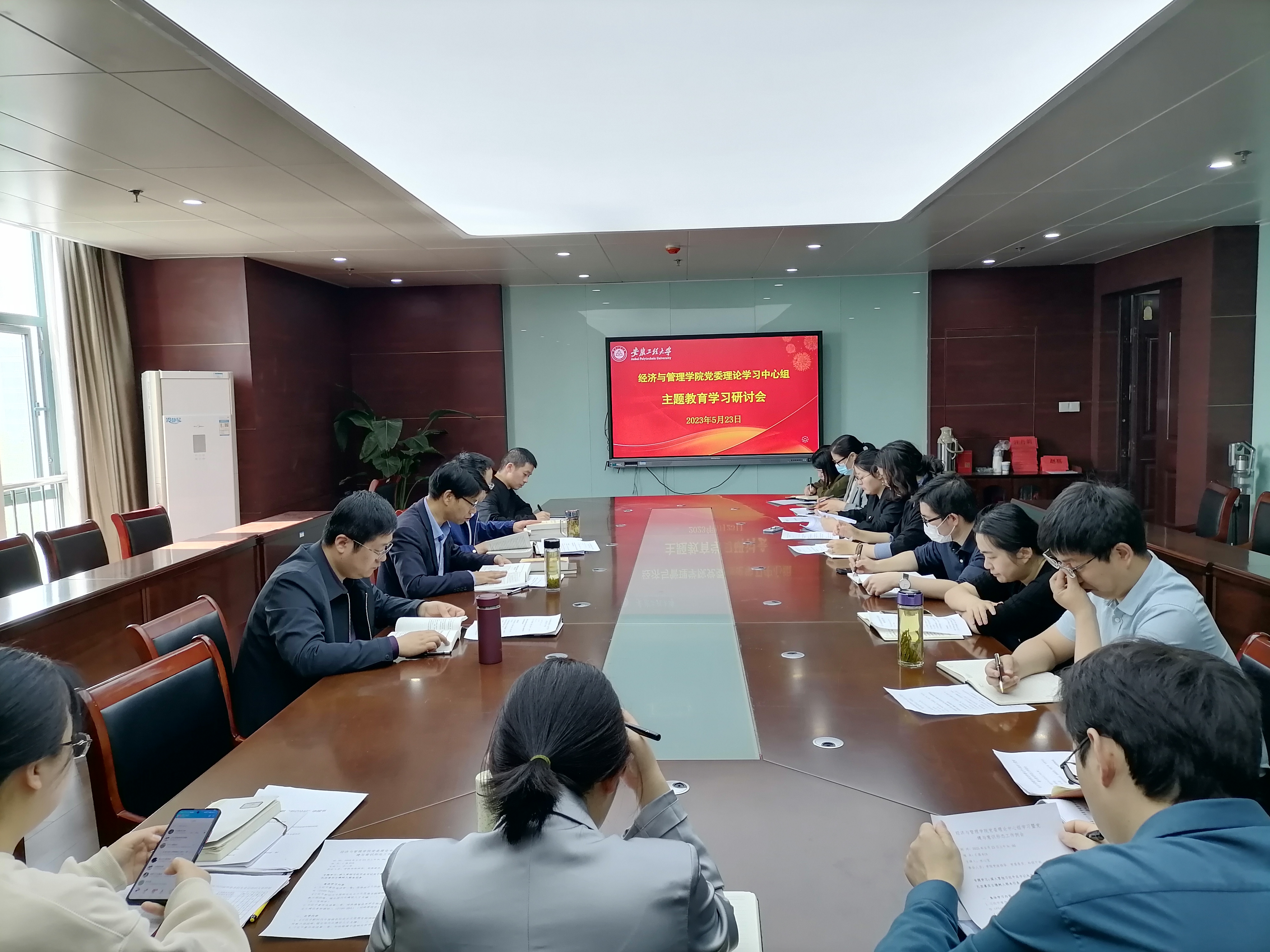 5月23日上午,经济与管理学院党委理论学习中心组在c座818会议室召开主题教育学习研讨会,学院领导班子成员、党委委员、科级干部、各党支部书记参加会议。会议由学院党委书记水心宝主持。