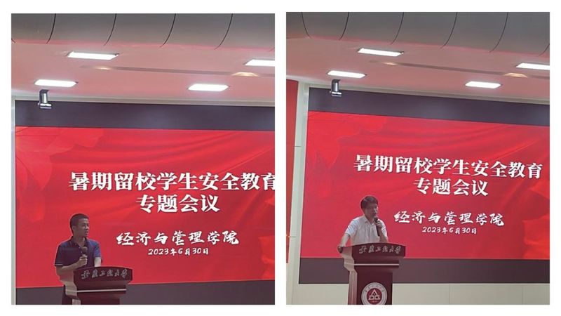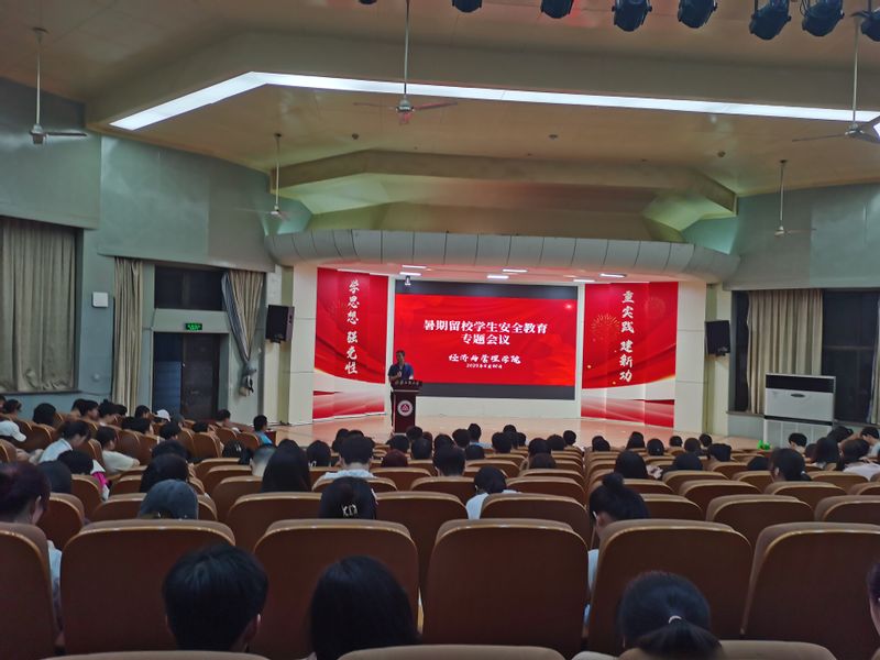 为深入落实学校“三抓”工作要求,加强学生暑期思想道德教育和安全教育,督促学生充分利用暑期时间开展各项工作,经济与管理学院于6月30日下午6:30在校学术报告厅召开2023年暑期留校安全教育专题会议。学院党委书记水心宝、副书记刘海涛、副院长桂云苗、院团委书记、辅导员以及全体留校学生300余人参加会议。会议由刘海涛主持。