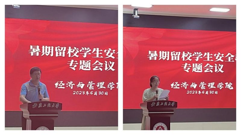 刘海涛领学《关于加强暑期留校学生教育管理的通知》,强调在校学生应严格遵守,紧密配合,保持信息畅通,以咬定青山不放松的精神,平稳心态,顽强拼搏,力争顶峰再相见;同时,还宣布了安全工作组名单。张方领学《致学生和家长的一封信》,督促学生在校做到充实假期生活、主动报平安,加强防骗防盗防溺水等,配合学校工作。物流201班唐倩作为留校生代表在会议上宣读暑期留校安全承诺书,表示将严格要求自己,遵守各项校纪校规,留校期间严格执行签到、请假制度,度过一个安全文明的假期。