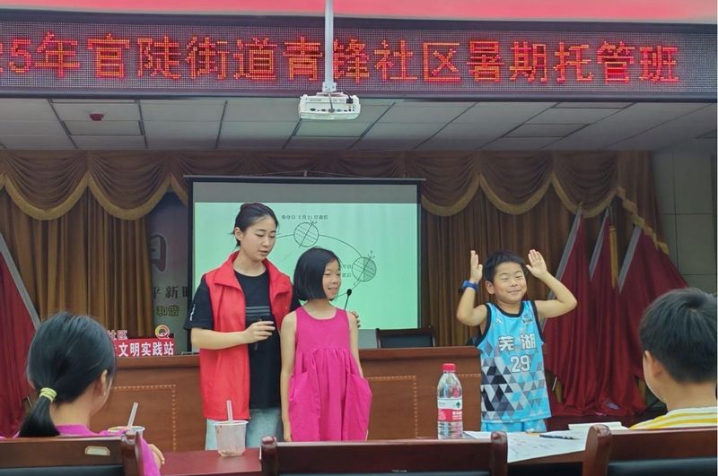 7月14日到7月28日,经济与管理学院星火义务支教社的志愿者们走进青锋社区,开展了数日的暑假三下乡活动。这场集安全教育、作业辅导、故事分享、手工教学、体育游戏与知识科普于一体的实践活动,既为社区注入了青春活力,也让孩子们在欢乐中收获成长,同时也体现出星火义务支教社特色的五大课程内容。