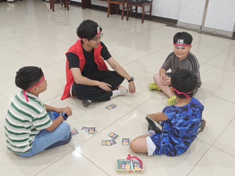 体育游戏环节则充满欢声笑语,“两人三足”“抓瞎子” 等项目让小空地变成了欢乐的海洋,志愿者与孩子们一同奔跑跳跃,汗水里折射出纯真的友谊。围坐在一起进行智力小游戏也让他们在玩中学,在学中玩。
