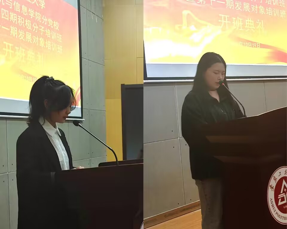开班典礼在雄壮的国歌声中拉开序幕。培训班班主任王鸣鹃、陈涛宣读本期培训班学员管理细则及培训教学计划,要求学员强化纪律意识,严格遵守培训班的相关规定。积极分子培训班学员代表计算机212班梅如异、发展对象培训班学员代表物联网201阙琴溶进行发言,两位学员从学习重要性角度承诺珍惜学习机会,以饱满的热情和实际行动完成培训班的各项计划,提高思想觉悟,逐步向党组织靠拢,将自己锻炼成符合党和人民期望的社会主义合格建设者和可靠接班人!