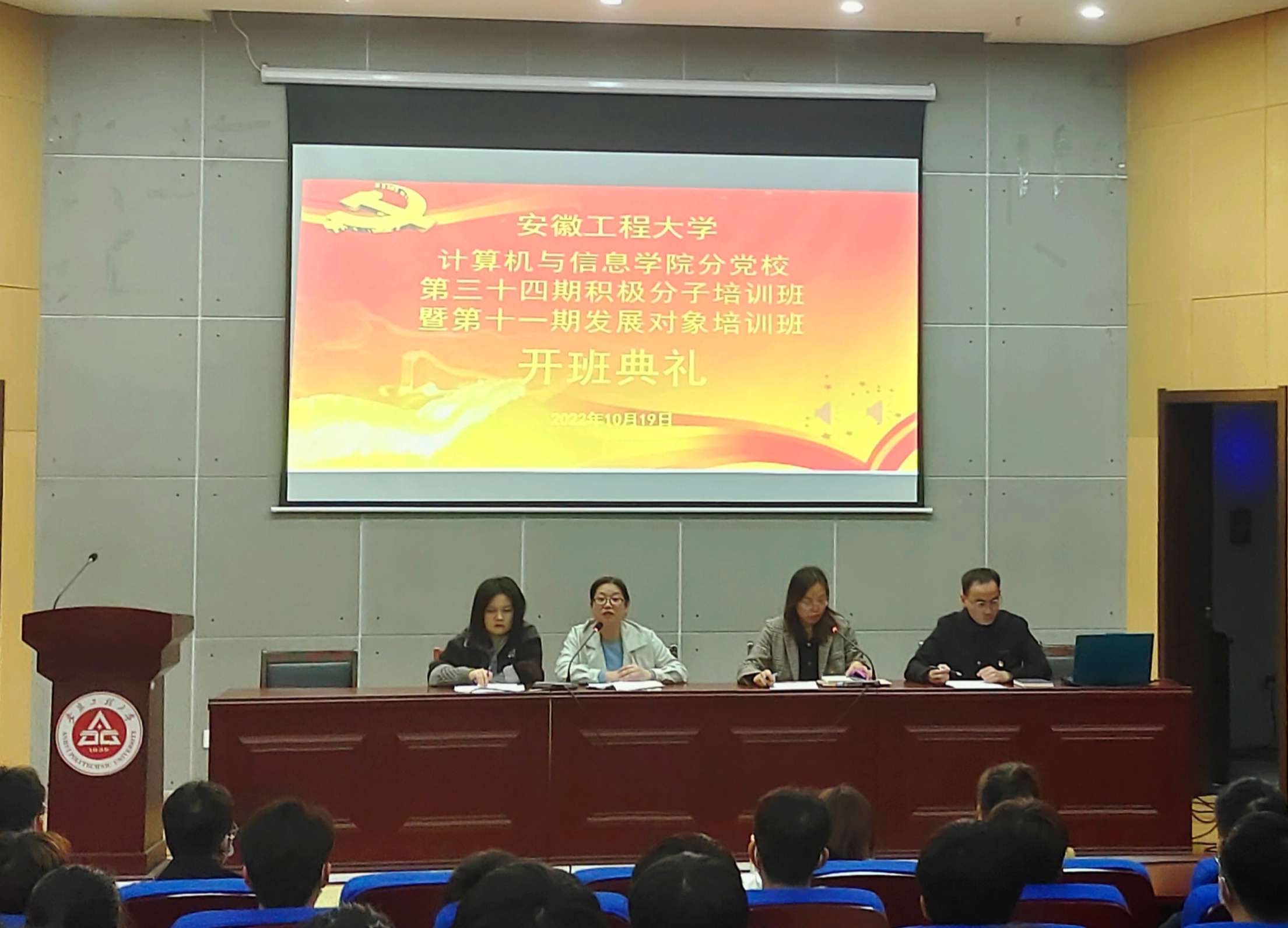 为确保党员发展质量,加强对入党积极分子和发展对象的培养、教育,10月19日,计算机与信息学院分党校举行第三十四期入党积极分子暨第十一期发展对象培训班开班仪式。院党委副书记孙德茹、院组织员罗国旗、第十一期发展对象培训班班主任王鸣鹃、第三十四期积极分子培训班班主任陈涛及全体学员参加。