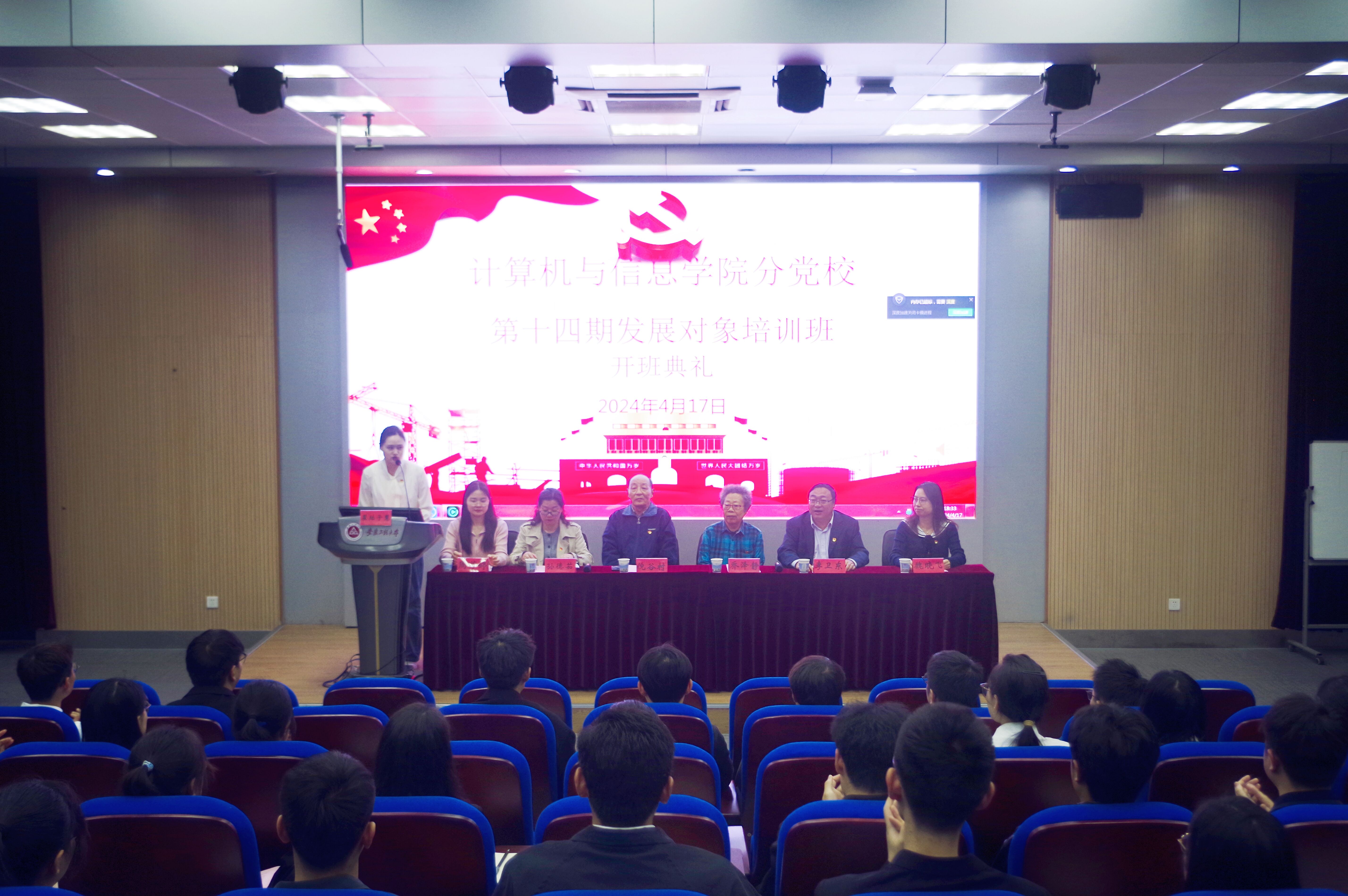 为切实做好党员发展工作,加强发展对象理想信念和党性教育,提升政治理论素养,4月17日,计算机与信息学院分党校举行发展对象培训班开班典礼,校党校督导组成员乔泽静、倪谷村,院党委书记李卫东,院党委副书记孙德茹,辅导员魏晓飞、周芳婷及培训班班主任瞿陆子慧参加。