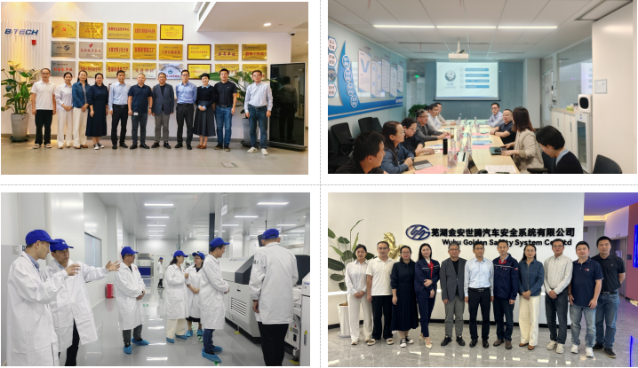 在芜湖金安世腾汽车安全系统有限公司,公司副总经理王辉带领大家参观企业生产制造车间,介绍公司安全带和安全气囊等被动安全系统的设计、生产、研发等技术,表示企业近年来发展规模不断增加,对科技研发的需求也不断加大,希望能进一步加强校企交流合作,发挥各自优势,取得新的成果。座谈会上,钱帮贵总结了此次走访企业的重大意义,表示近年来企业实现了产量翻倍,发展十分迅速,希望搭建校企合作平台,推动学校和企业发展更上一个台阶,增强芜湖城市竞争力。李烨感谢鸠江区人社局对本次活动的精心安排,希望人社局继续搭建校企沟通平台,校企双方在产学研合作、实习实训、毕业生就业等方面进一步加强合作,实现校政企多方共赢。