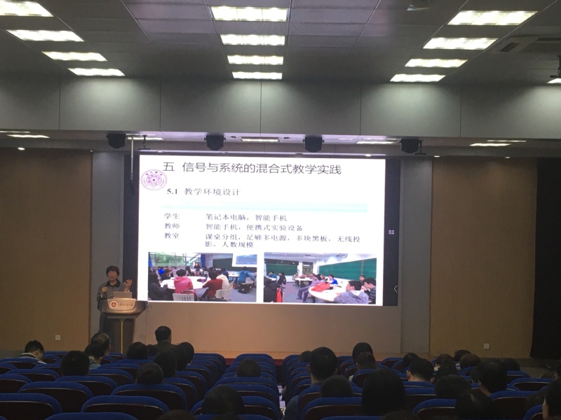 宫琴教授首先从MOOC的起源、建设发展现状及国家层面的政策支持进行了介绍,并结合自己MOOC建设的过程分享了自己的教学理念与经验。随后她对混合式教学与翻转课堂如何开展、混合式教学的重度与深度融合等常见模式进行了详细介绍。最后宫教授结合自己所授《信号与系统》课程就如何开展混合式教学与实践以及课程建设支撑环境等分享了自己的相关经验。