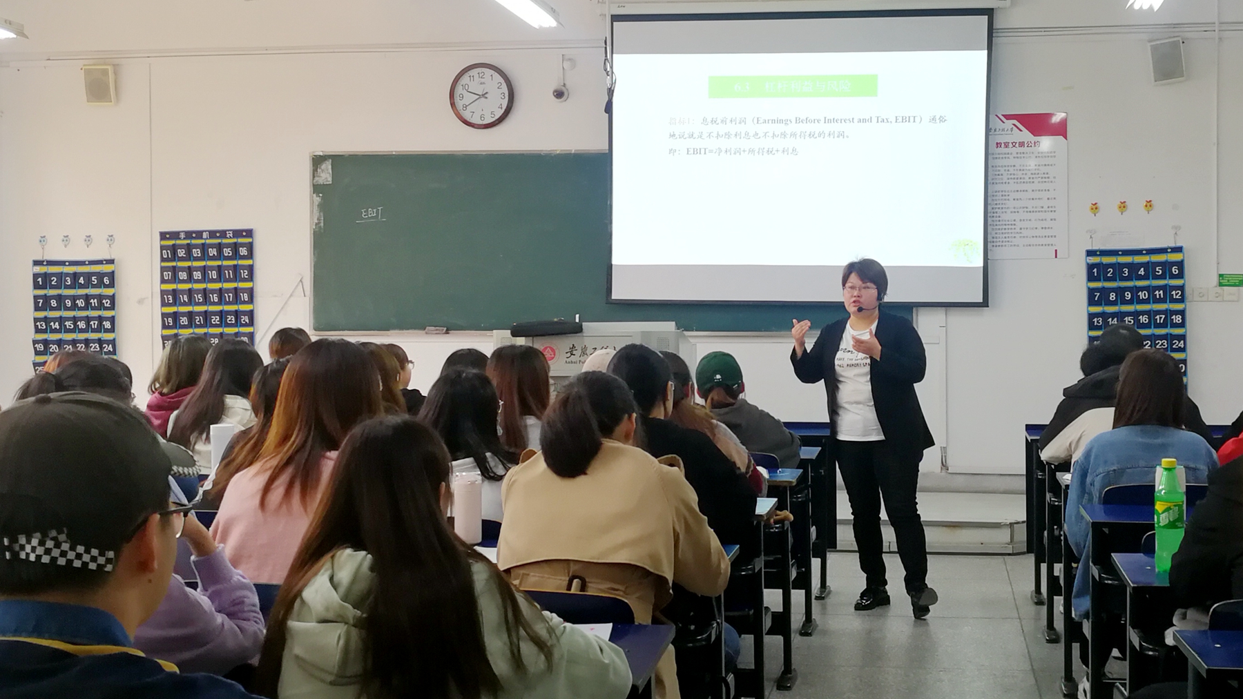 本次《财务管理》授课对象为国际经济与贸易专业二年级学生,主要讲授第五章第3节“杠杆利益与风险”和第4节“资本结构决策分析”。郝老师教学过程流畅,循循善诱,分析细腻,内容逻辑性强,重难点突出,全程微笑面对学生,学生参与热情很高,气氛活跃,课堂效果很好。