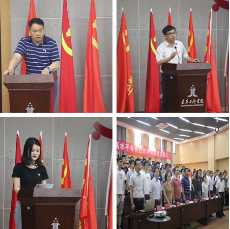 大会在庄严的国歌声中开始。会上举行了隆重的入党宣誓和重温誓词仪式。全体党员在领誓人赵宏的带领下,举起右手,面向党旗庄严宣誓。现场声音铿锵有力,感情饱满,浓浓的爱党爱国之情激荡着即将离校、奔赴前程的赤子之心。
