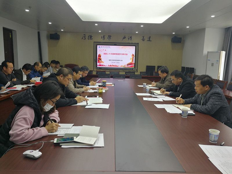 在交流研讨环节,学院党政领导李烨、徐达奇、张礼波、土木工程教师党支部书记曹兵、院团委书记苏伟刚、建筑与研究生学生党支部书记黄贤君,结合实际,联系自身,畅谈了自己的学习体会。大家一致认为,中国共产党第二十次全国代表大会,是在进入全面建设社会主义现代化国家新征程的关键时刻召开的一次十分重要的大会,科学谋划未来五年乃至更长时期党和国家事业发展目标任务和大政方针,事关党和国家事业继往开来,事关中国特色社会主义前途命运,事关中华民族伟大复兴。习近平总书记在二十大报告中提出了一系列新观点、新论断、新思想、新战略、新要求,深入学习宣传贯彻党的二十大精神是当前和今后一个时期全党全国首要政治任务,我们一定要全面学习、深入领会、认真落实。要深刻认识教育、科技、人才是全面建设社会主义现代化国家的基础性、战略性支撑的科学内涵和重大意义。当前,学院进入第二个十年发展关键期,我们要认真学习党的二十大精神,聚焦“三抓”,落实“三全六专”,要在高层次人才引进、学科学位建设、科研能力和水平快速提升等方面下功夫、出实招、见实效,凝心聚力,开拓进取,扎实工作,为建设有水平、有特色的省内具有重要影响的学院而努力奋斗。