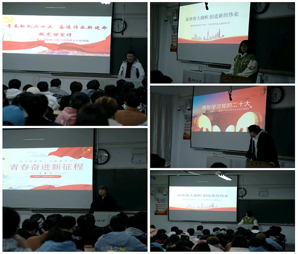 近日来,该院第14期入党积极分子培训班通过开展形式多样的学习活动,助力全体学员全面准确学习领会党的二十大精神,推动“三全六专”育人工作落到实处,全面提升入党积极分子培养质量。这些活动起到“学深悟透、融会贯通、学以致用、学以促用”的良好效果。大家纷纷表示,党的二十大报告为青年成长打开了更加宏阔的视野,勾画出更加美好的前景。在接下来的学习、工作中,始终牢记习近平总书记对青年的谆谆教导和殷殷嘱托,怀抱梦想又脚踏实地,敢想敢为又善作善成。坚定理想信念,筑牢精神之基,厚植爱国情怀,矢志不渝跟党走,以实现中华民族伟大复兴为己任,以奋力争先、只争朝夕的使命感和紧迫感为全面建设社会主义现代化强国作出应有的贡献。
