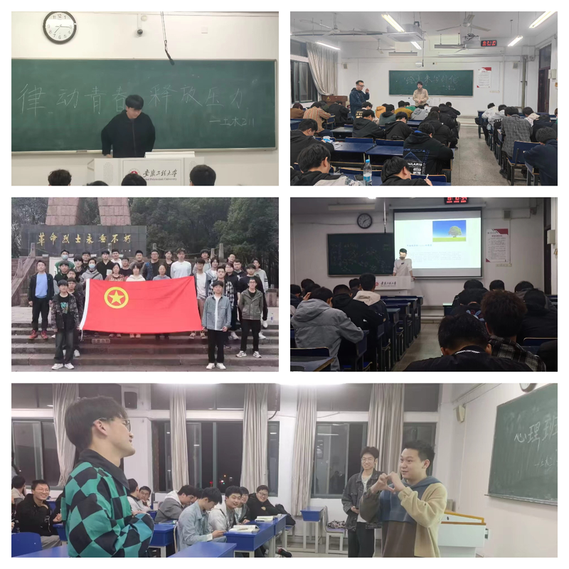 土木211举办了以“律动青春,敞开心灵”为主题的心理健康活动。依托“九九乘法表”、“心有灵犀”、“听曲猜歌”等小游戏开展;土木212组织同学给未来的自己写信,写完之后统一保存,在大学毕业之际拿出来共同回忆美好的大学生活;土木213通过观看心理健康电影,围绕 “大学生如何正确解决心理困惑”教育主题,畅所欲言,抒发己见;土木214将“大学生人格与健康”融入游戏环节,活跃了班级的气氛;给排水211组织了一次祭扫烈士陵园活动,回顾历史,重温历史,了解革命烈士的英雄事迹,增进了爱国主义情感;给排水212在班级开展“数字油画”活动,绘画作为心理疗法中的一种,有效帮助学生释放负能量、解压、宣泄情绪。