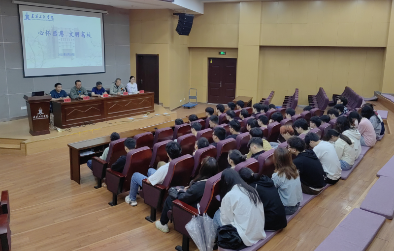为保证2023届毕业生离校、就业工作顺利有序进行,切实做好毕业生的引导、教育、服务工作,确保毕业生文明离校。5月26日上午,建筑工程学院在C座3楼报告厅组织召开2023届毕业生“心怀感恩·文明离校”主题活动。院党委书记李烨、副书记张礼波受邀出席,院团委负责人、毕业班辅导员、各毕业班班长、团支书、寝室长代表、学生代表共计80余人参加会议。