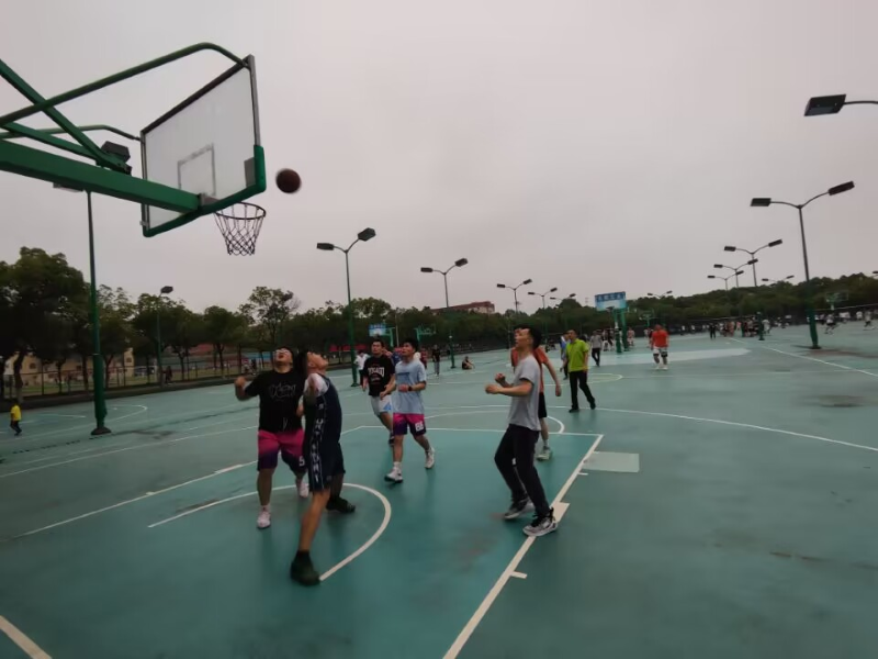 伴随着裁判的哨声响起,比赛拉开帷幕。本次比赛双方队伍分别为建筑工程学院教职工篮球队和给排水191和192级毕业班篮球队。比赛开始后,上半场双方队员进入比赛热身阶段,双方得分有来有回,随后两场比赛的队员们很快就进入了角逐的状态,比分交替上升,比赛进行至下半场,赛况愈发激烈,伴随着终场哨声的响起,全场师生球员洋溢着笑容,互相握手问候,送别篮球赛圆满结束。